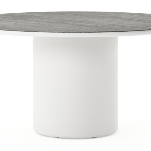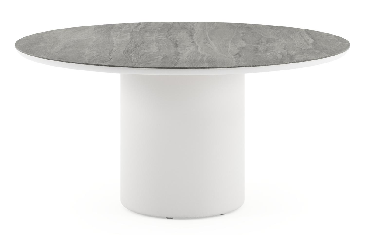 Amico tuintafel rond in wit aluminium en volkeramiek Aspen Grey - Dia. 148 x H 73.5 cm | Exterioo