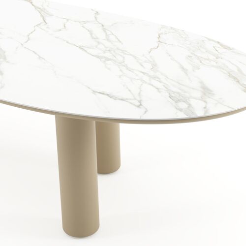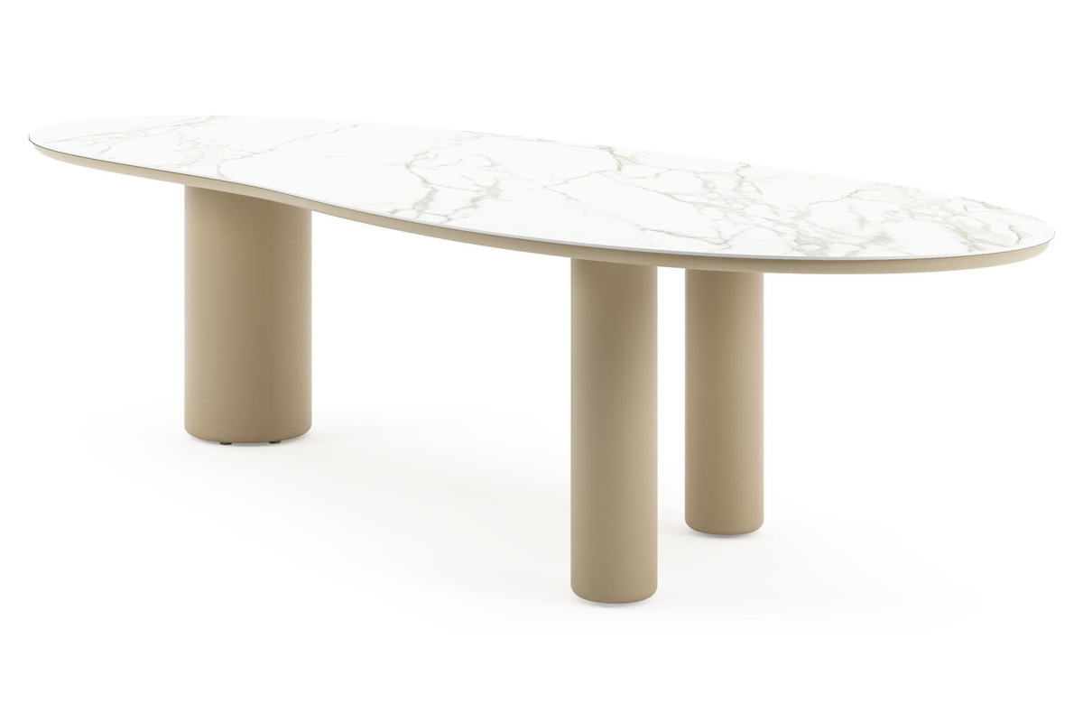Amico tuintafel organisch in beige aluminium en volkeramiek Calacatta - L 320 x B 120 x H 73.5 cm | Exterioo