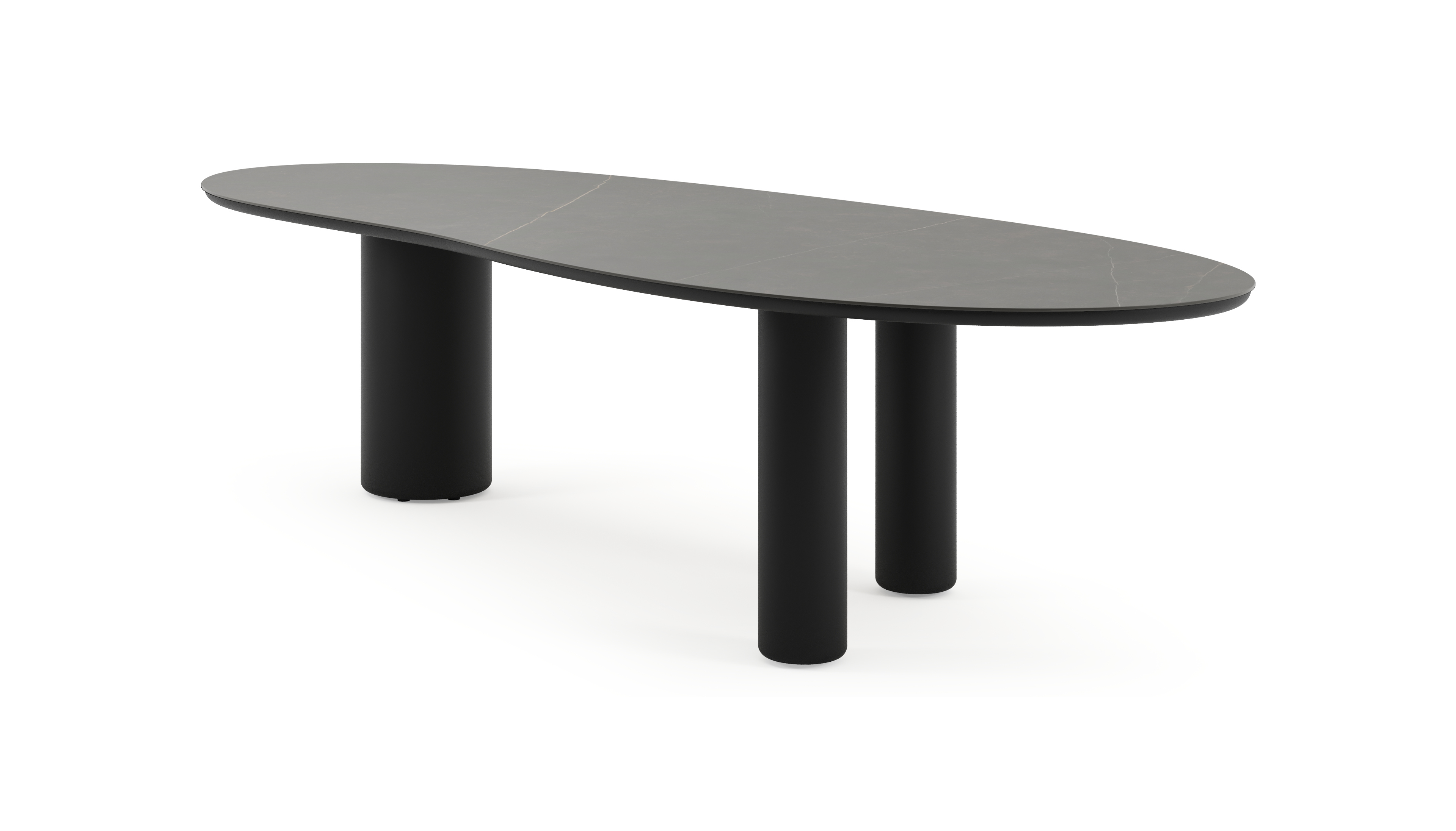 Amico tuintafel organisch in zwart aluminium en volkeramiek Calatorao - L 320 x B 120 x H 73.5 cm | Exterioo tuinmeubelen