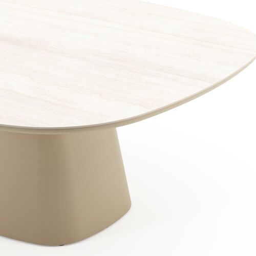 Amico tuintafel bombo xl in beige aluminium en volkeramiek Travertino Bianco - L 210 x B 148 x H 73.5 cm | Exterioo