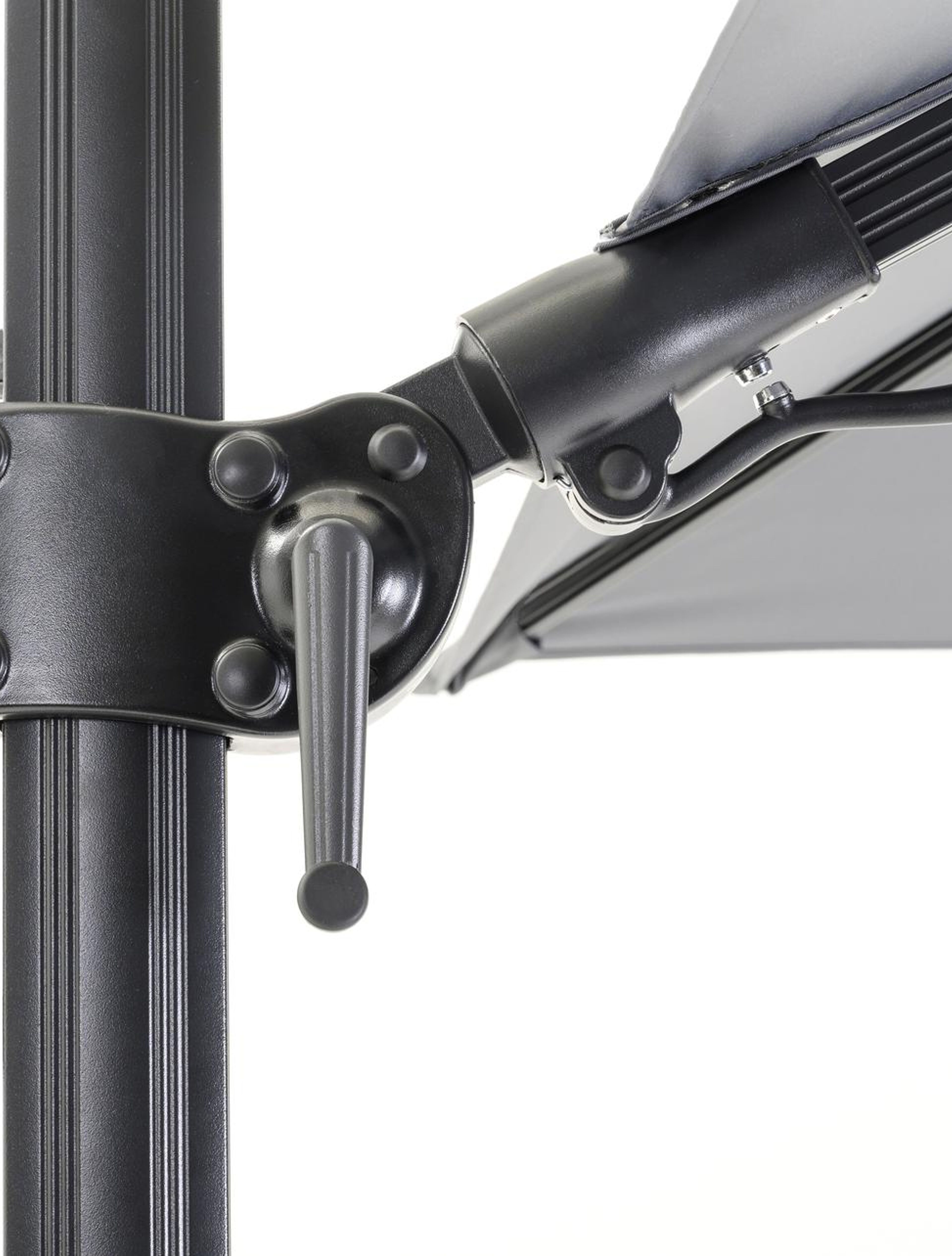 De mast van de parasol is gemaakt uit roestvrij aluminium, een stevig en licht materiaal. De parasoldoek bestaat uit All Weather Sunbrella, heeft verschillende eigenschappen die de ideale match vormen voor een kwalitatieve parasol. De parasol beschikt over een tilt functie, zo kan je de parasol ook kantelen. Daarnaast heeft de parasol ook een verstelbare functie, zo kan je de parasol in hoogte aanpassen.