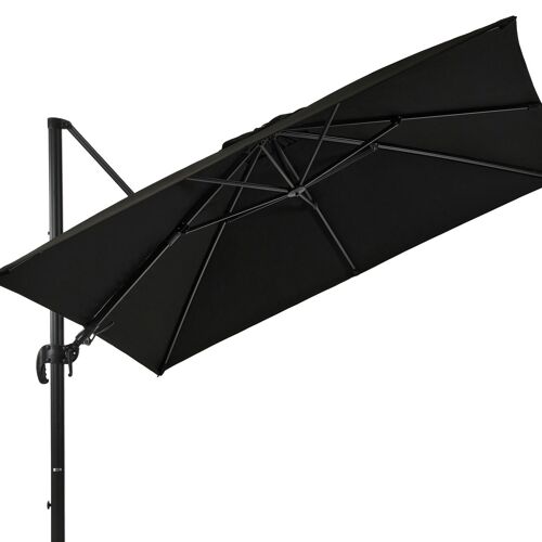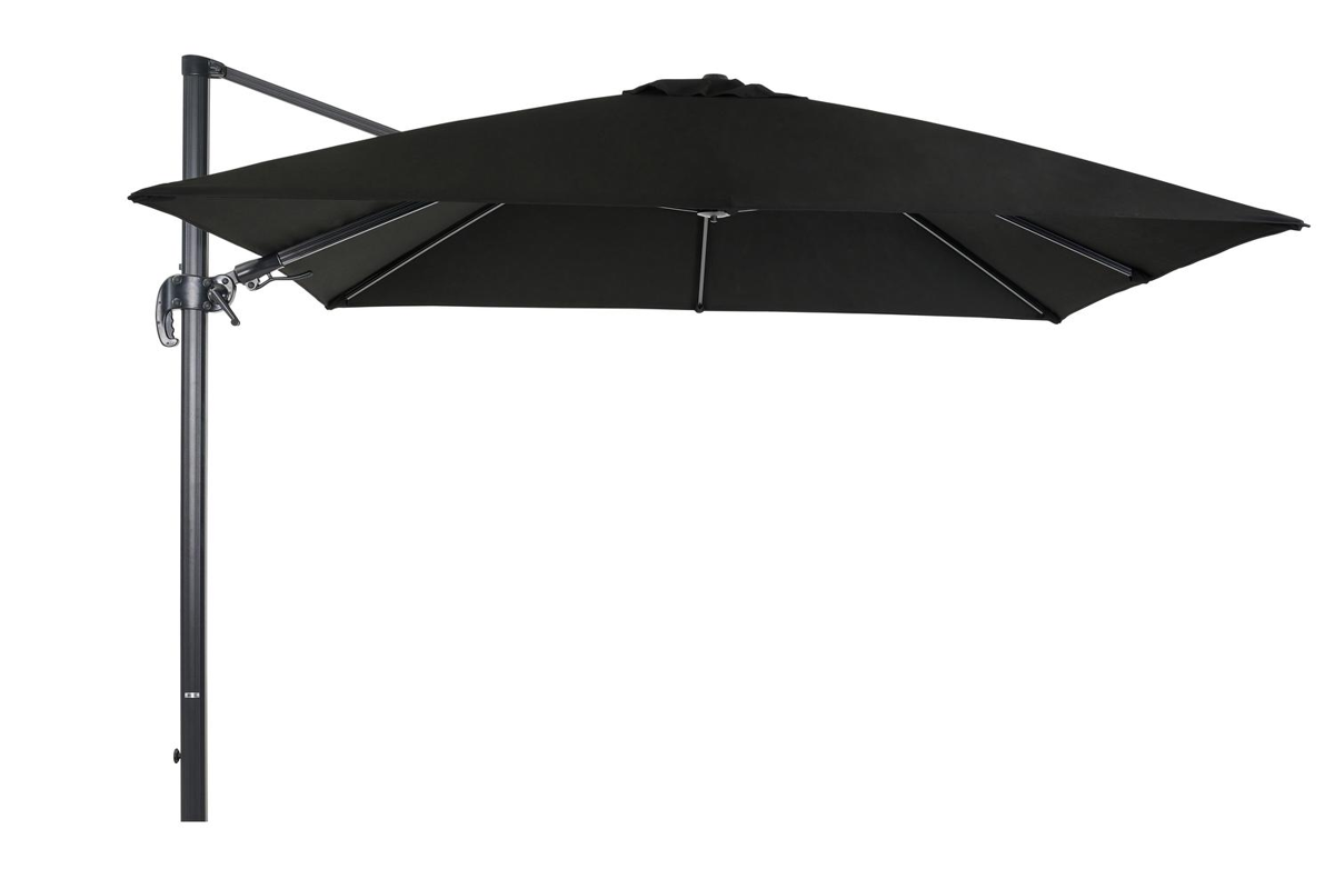 Avola zweefparasol met tiltfunctie in zwart aluminium met zwart sunbrella® premium parasoldoek - L1 300 x L2 300 cm (zonder voet) | Exterioo