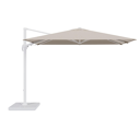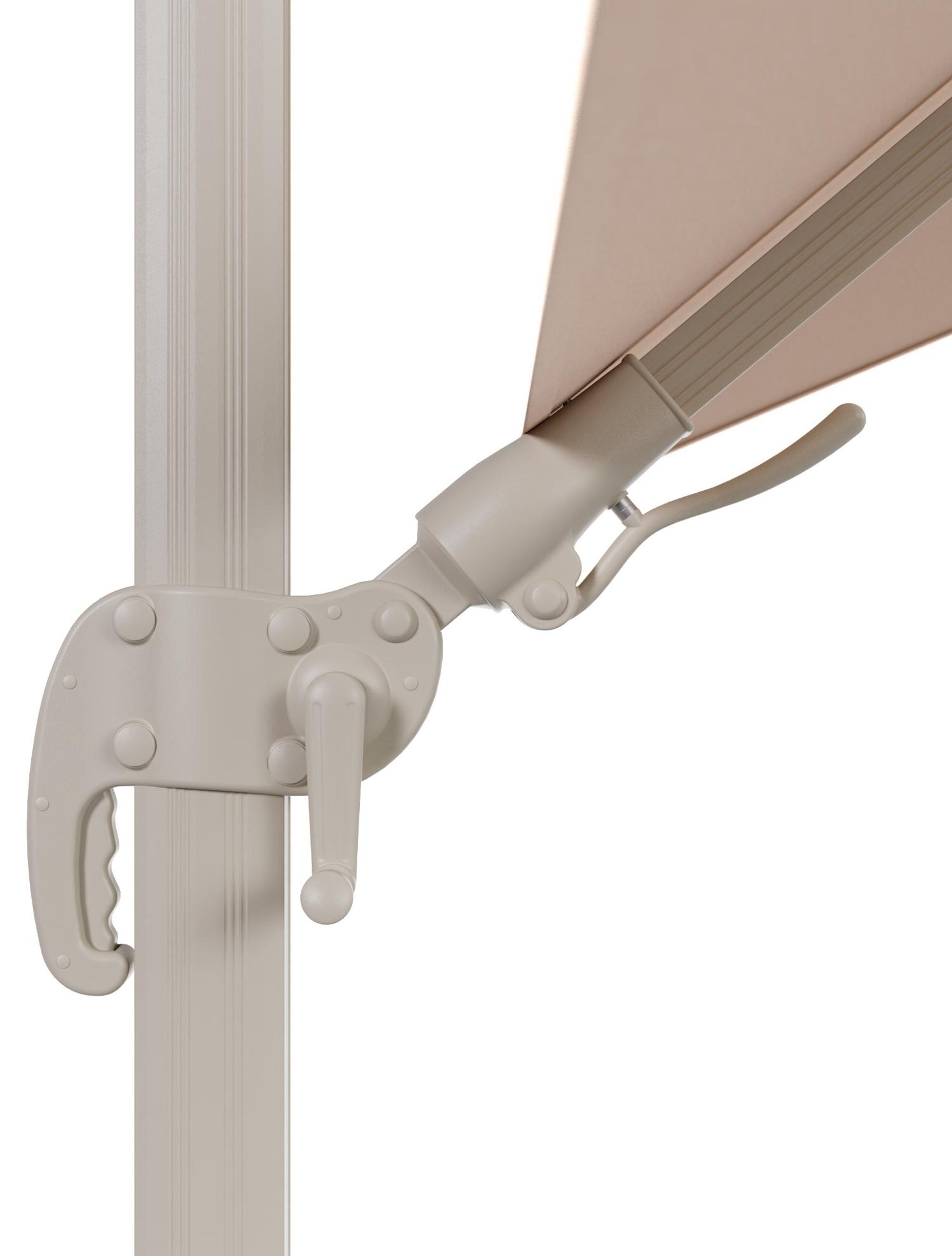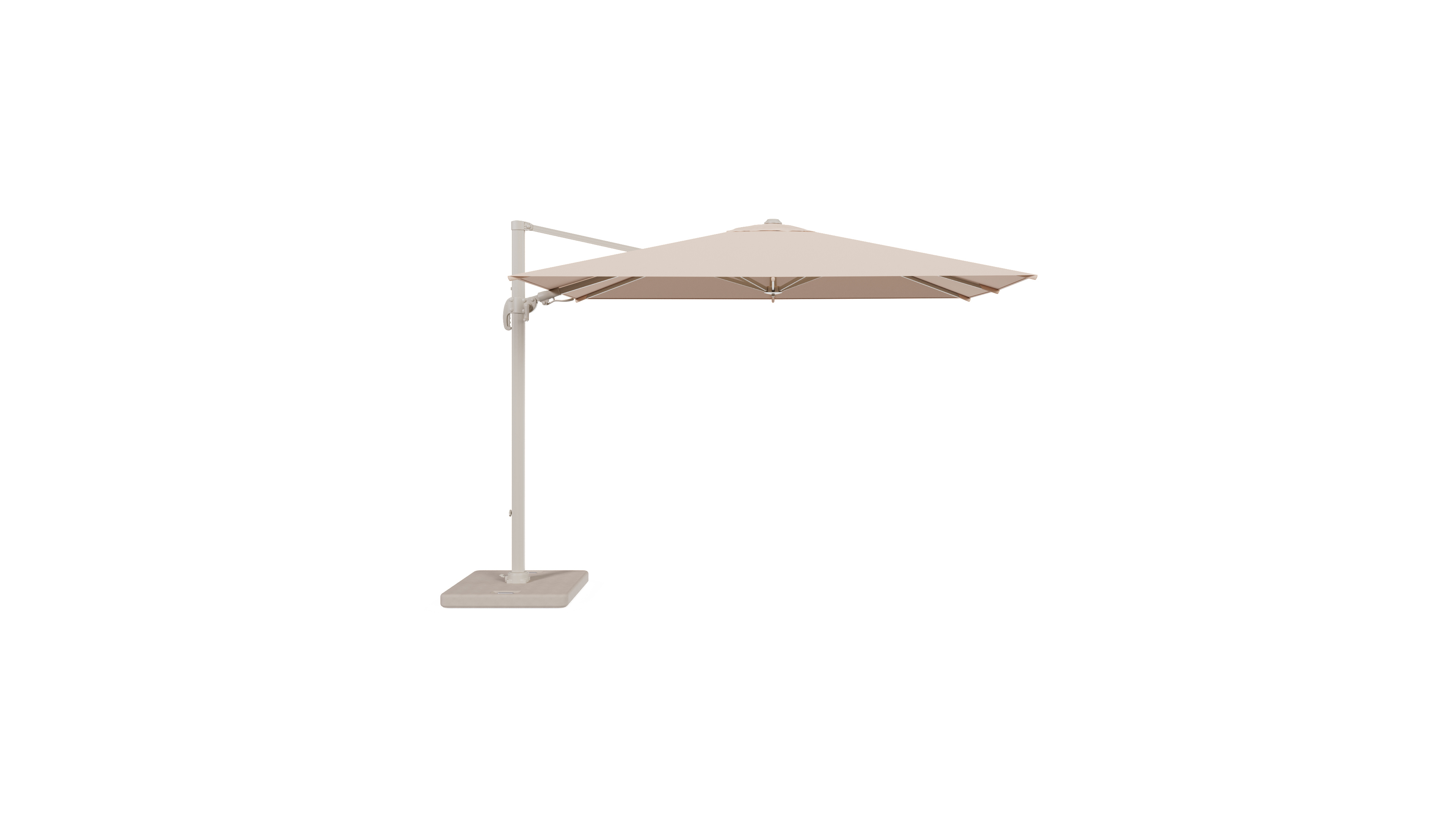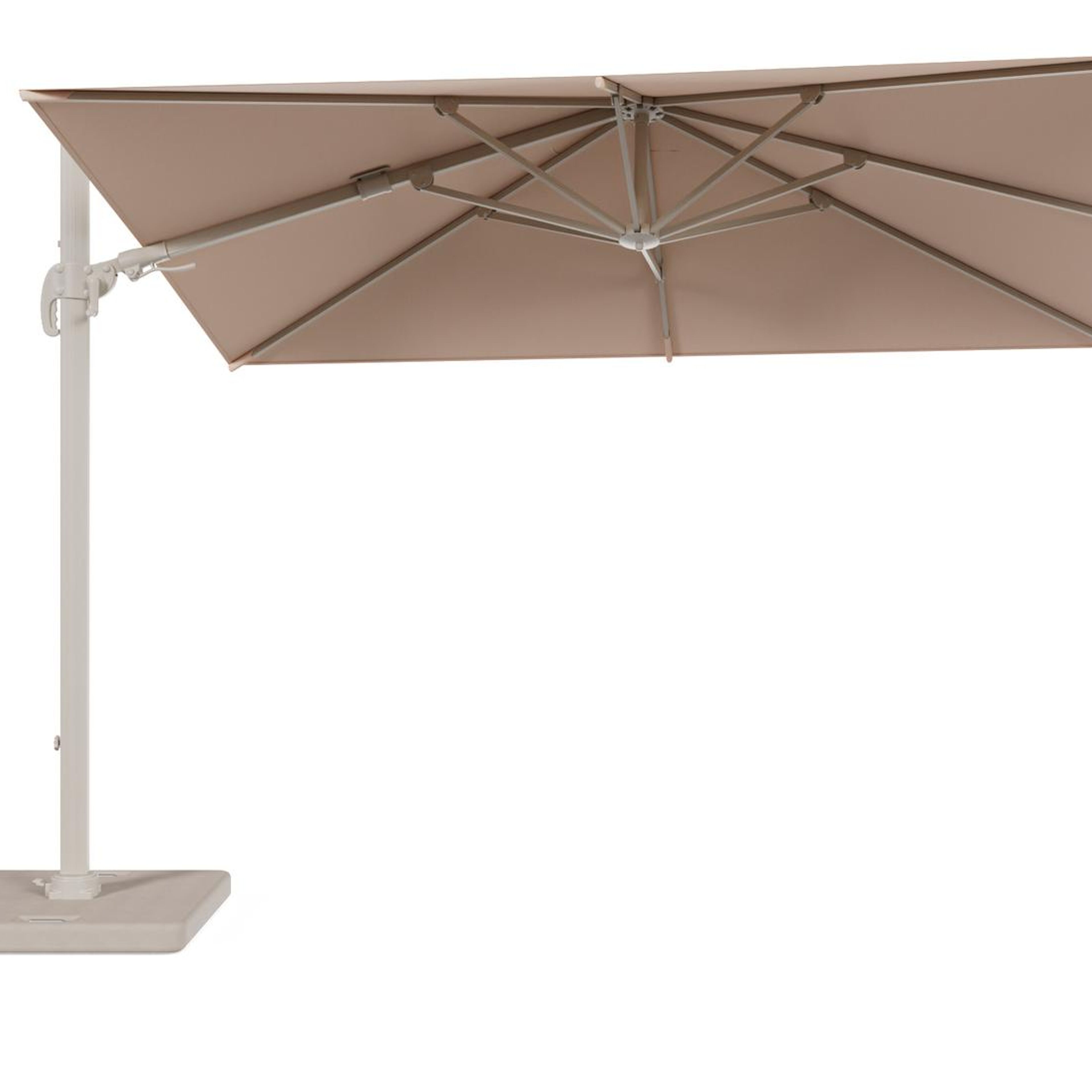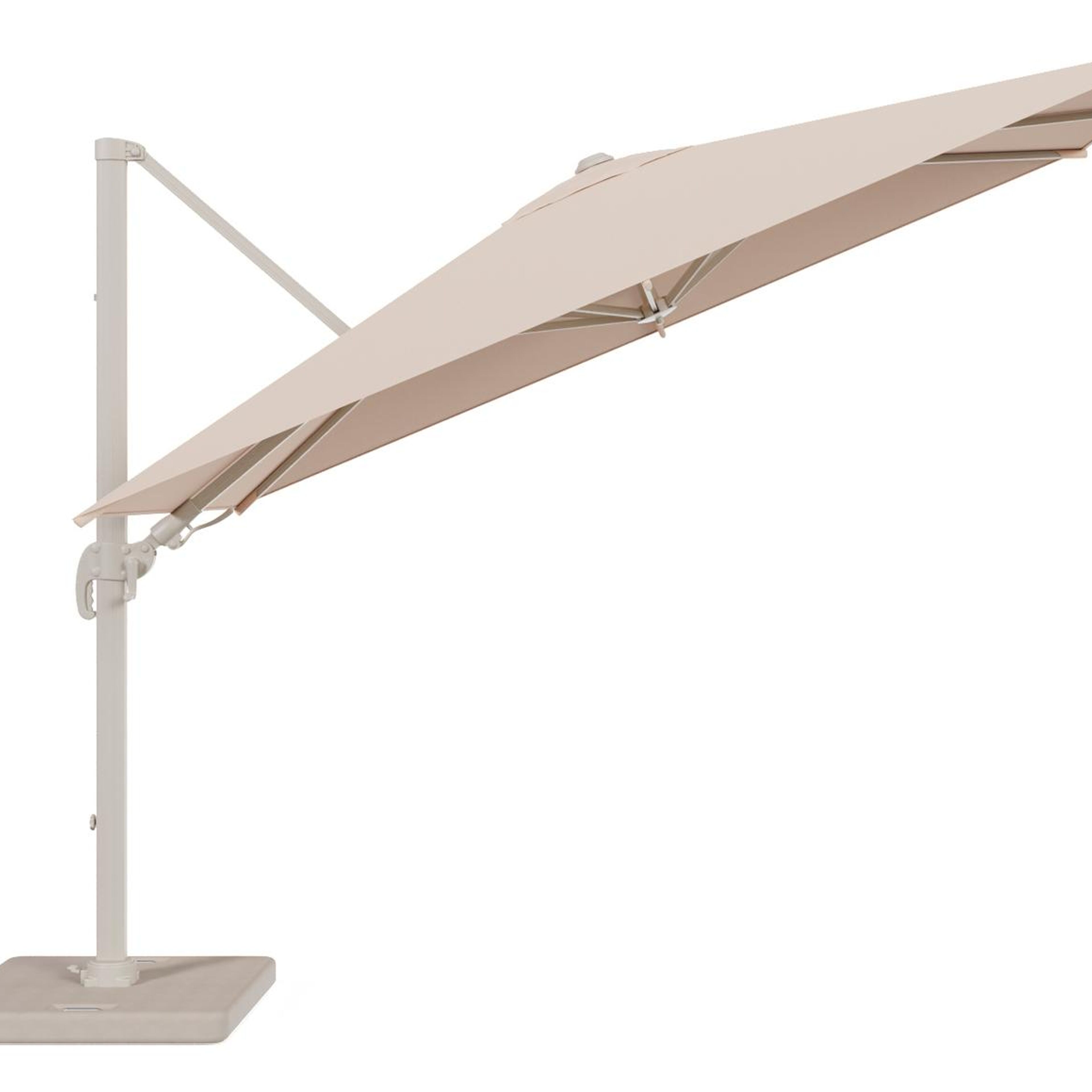 Avola zweefparasol met tiltfunctie in beige aluminium en Natte Linen Chalk Sunbrella Premium parasoldoek - L1 200 x L2 300 cm met parasolvoet Pedito 120 kg | Exterioo tuinmeubelen