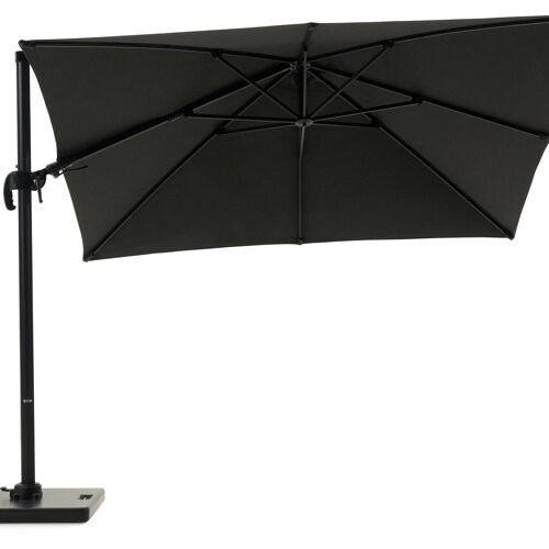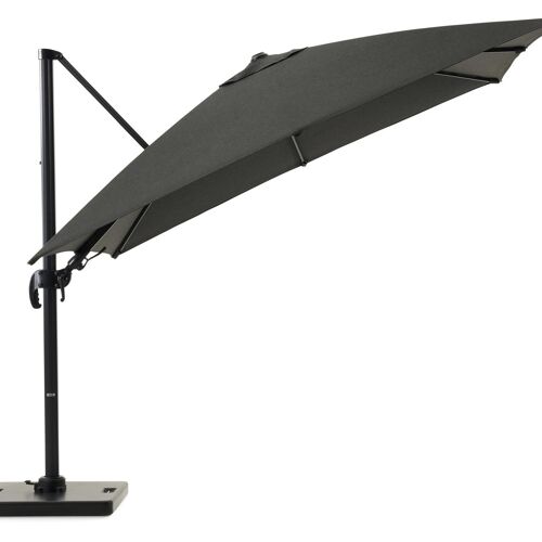 Avola zweefparasol met tiltfunctie in zwart aluminium en Natte Sooty Sunbrella® Premium parasoldoek - L1 300 x L2 300 cm met Pedito parasolvoet 120 kg | Exterioo