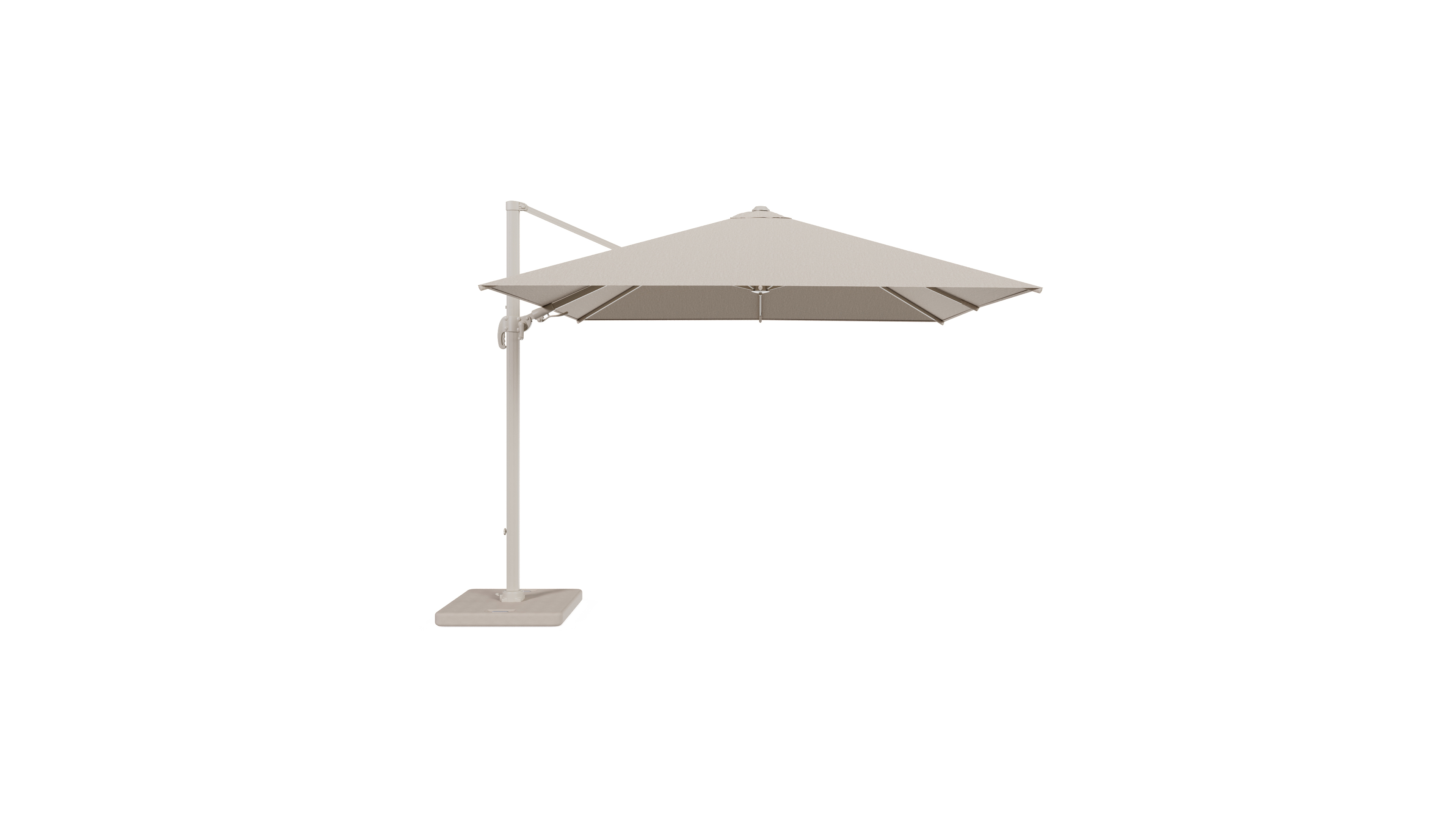 De parasoldoek is gemaakt uit Weather+ Softtouch. De duurzame stof voelt zacht aan en is vuilafstotend. Een Weather+ Softtouch parasoldoek is beperkt waterafstotend. In de winter of bij langdurige regen dek je de parasol best af met de beschermhoes.
