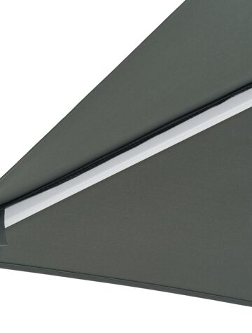 De parasoldoek is gemaakt uit Weather+ Softtouch. De duurzame stof voelt zacht aan en is vuilafstotend. Een Weather+ Softtouch parasoldoek is beperkt waterafstotend. In de winter of bij langdurige regen dek je de parasol best af met de beschermhoes.