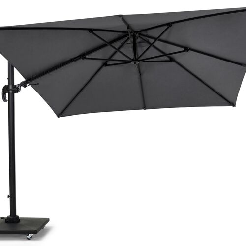 De parasoldoek bestaat uit Weather+Softtouch, een zachte en vuilafstotende stof. De parasol beschikt over een tilt functie, zo kan je de parasol ook kantelen. Daarnaast heeft de parasol ook een verstelbare functie, zo kan je de parasol in hoogte aanpassen. De parasolvoet uit beton is inclusief met wielen.