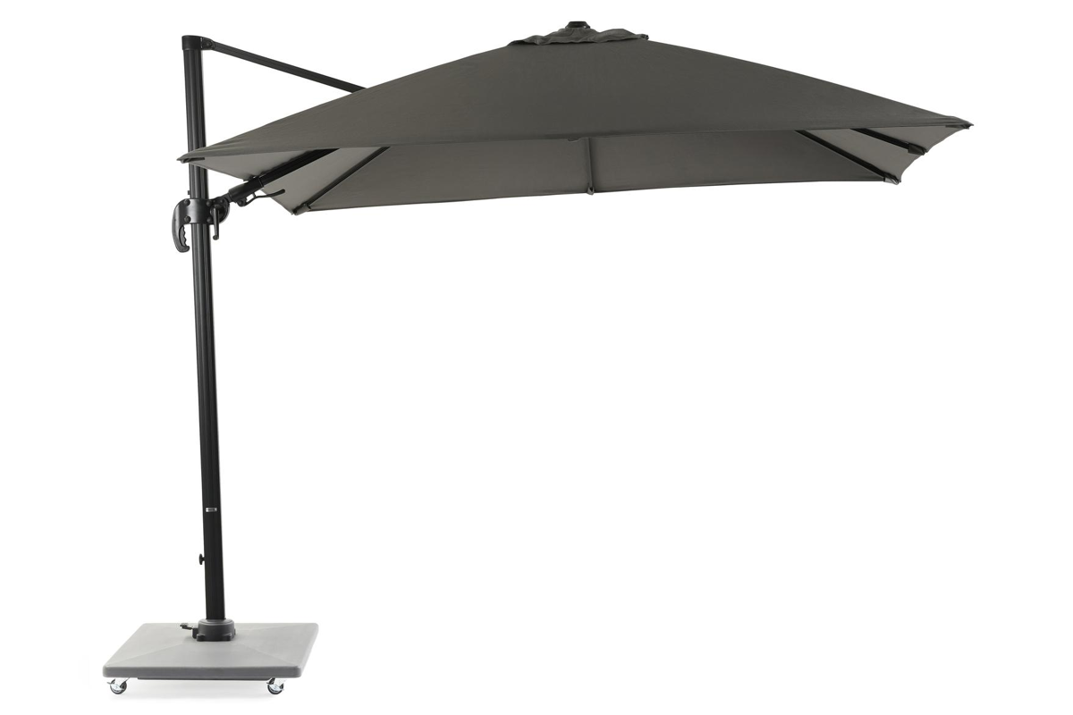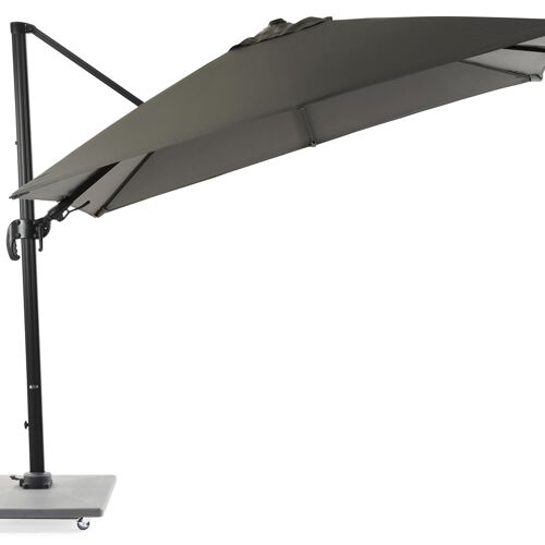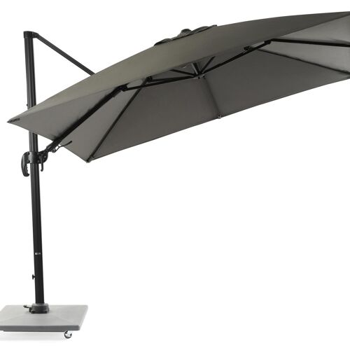 Avola zweefparasol met tiltfunctie in zwart aluminium met grijs sunbrella® premium parasoldoek - L1 300 x L2 300 cm (met voet) | Exterioo