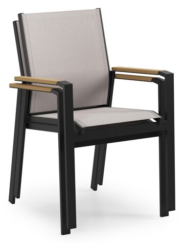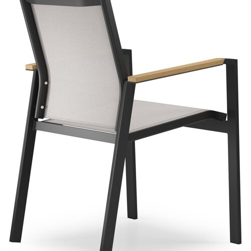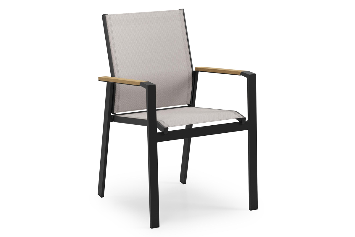 Bahia tuinstoel in zwart aluminium en beige textilene en polywood armleuning | Exterioo