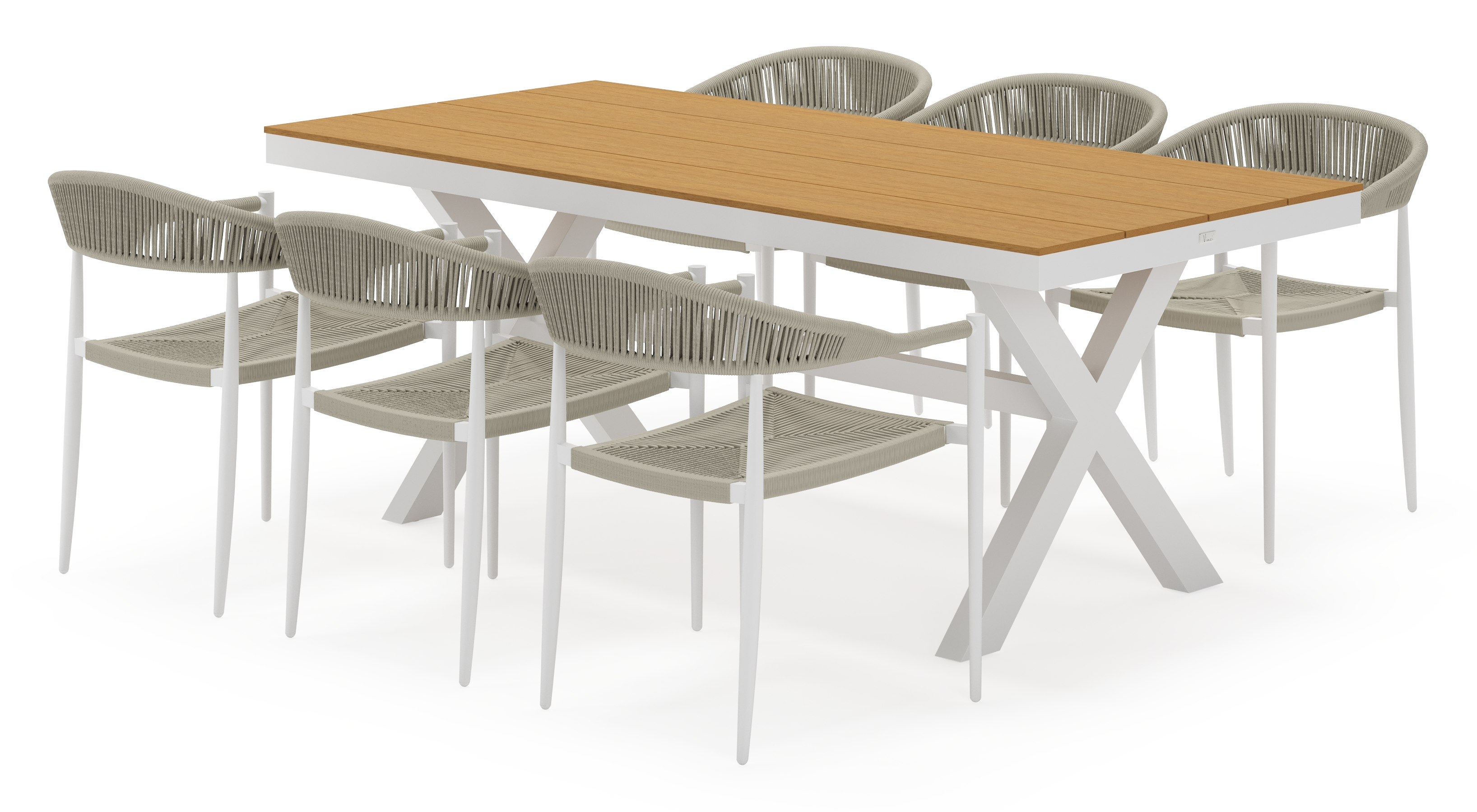 Het frame van de tafel is gemaakt uit roestvrij aluminium, een sterk, maar toch licht materiaal dat makkelijk verplaatsbaar is. Het oppervlak is glad afgewerkt waardoor het geen vuil aantrekt en onderhoudsvriendelijk is. De poedercoating zorgt voor de UV- en weerbestendigheid van je meubel.