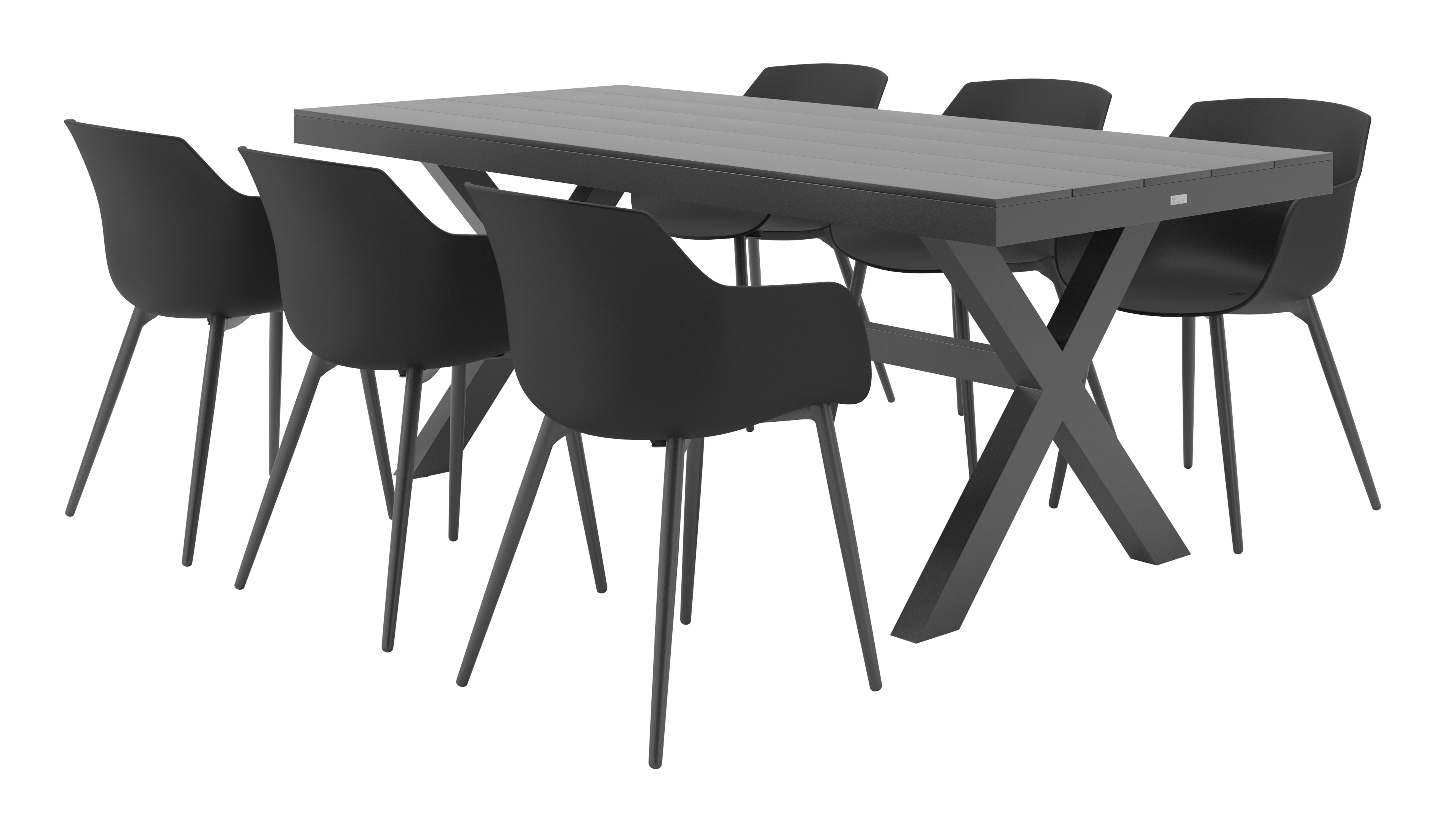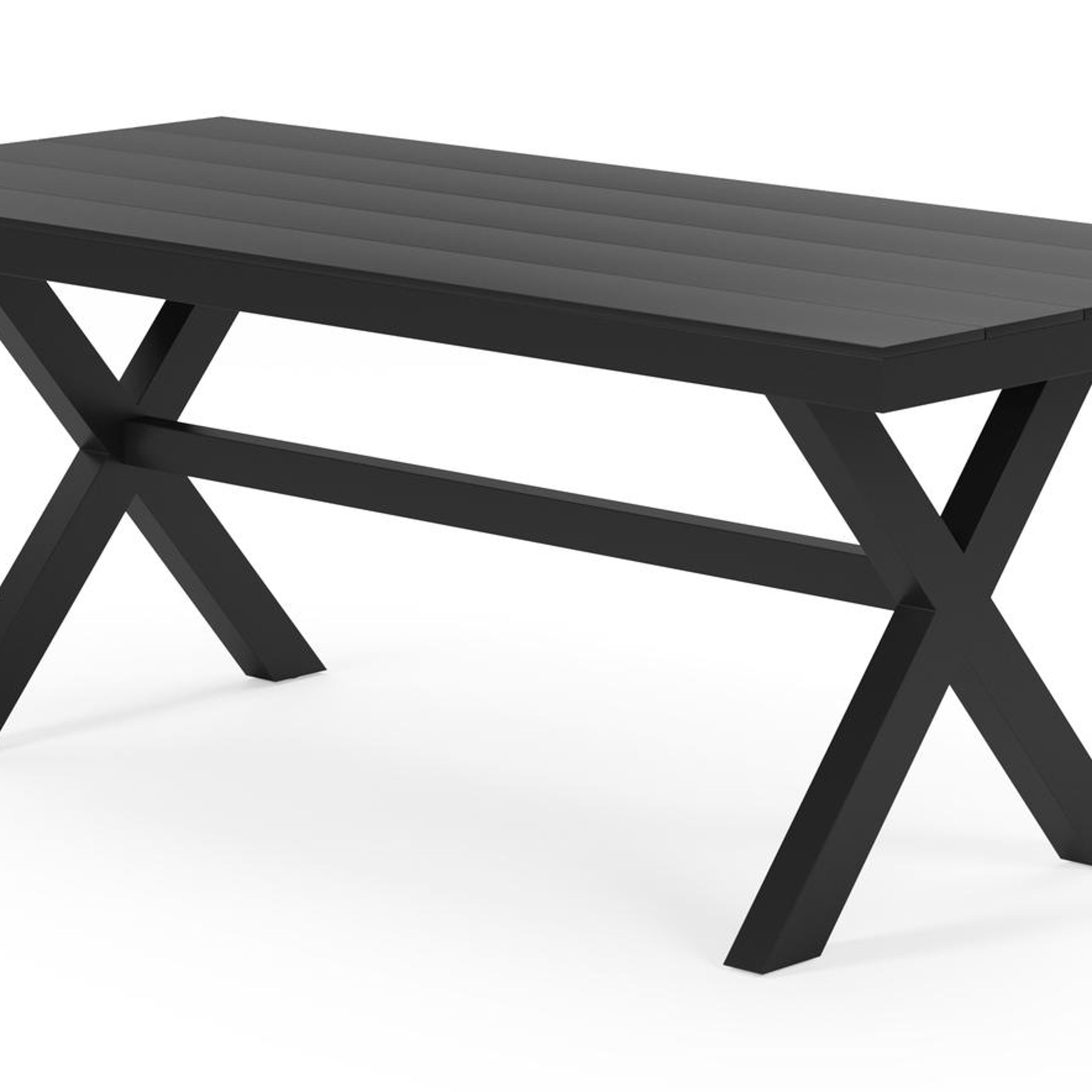 Bahia tuinset herken je aan de stevige look en kruispoot. Het frame waarop het tafelblad ligt, is robuust. In het midden van de tafel loopt een balk als extra ondersteuning van het frame.