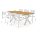 Bahia tuinset herken je aan de stevige look en kruispoot. Het frame waarop het tafelblad ligt, is robuust. In het midden van de tafel loopt een balk als extra ondersteuning van het frame.