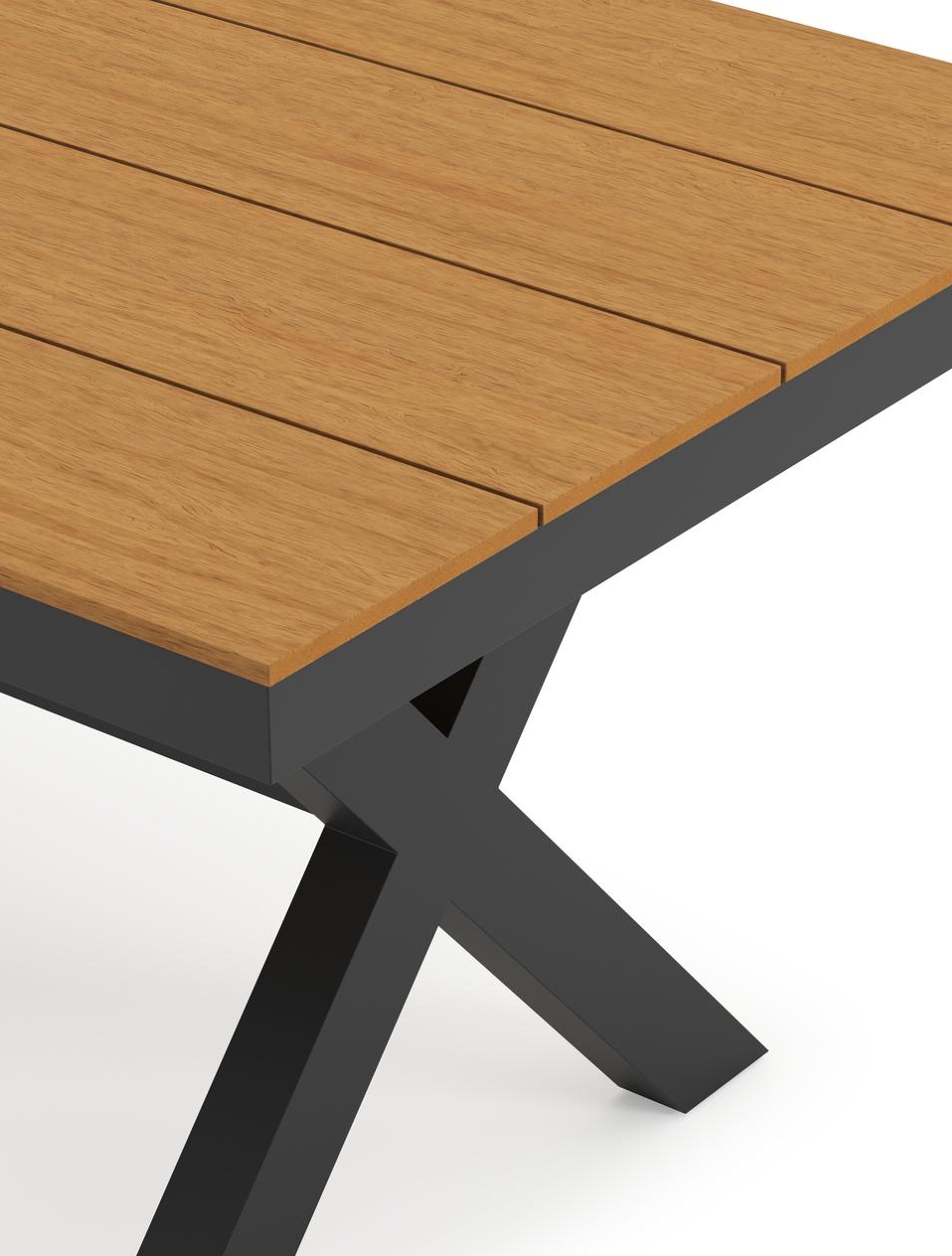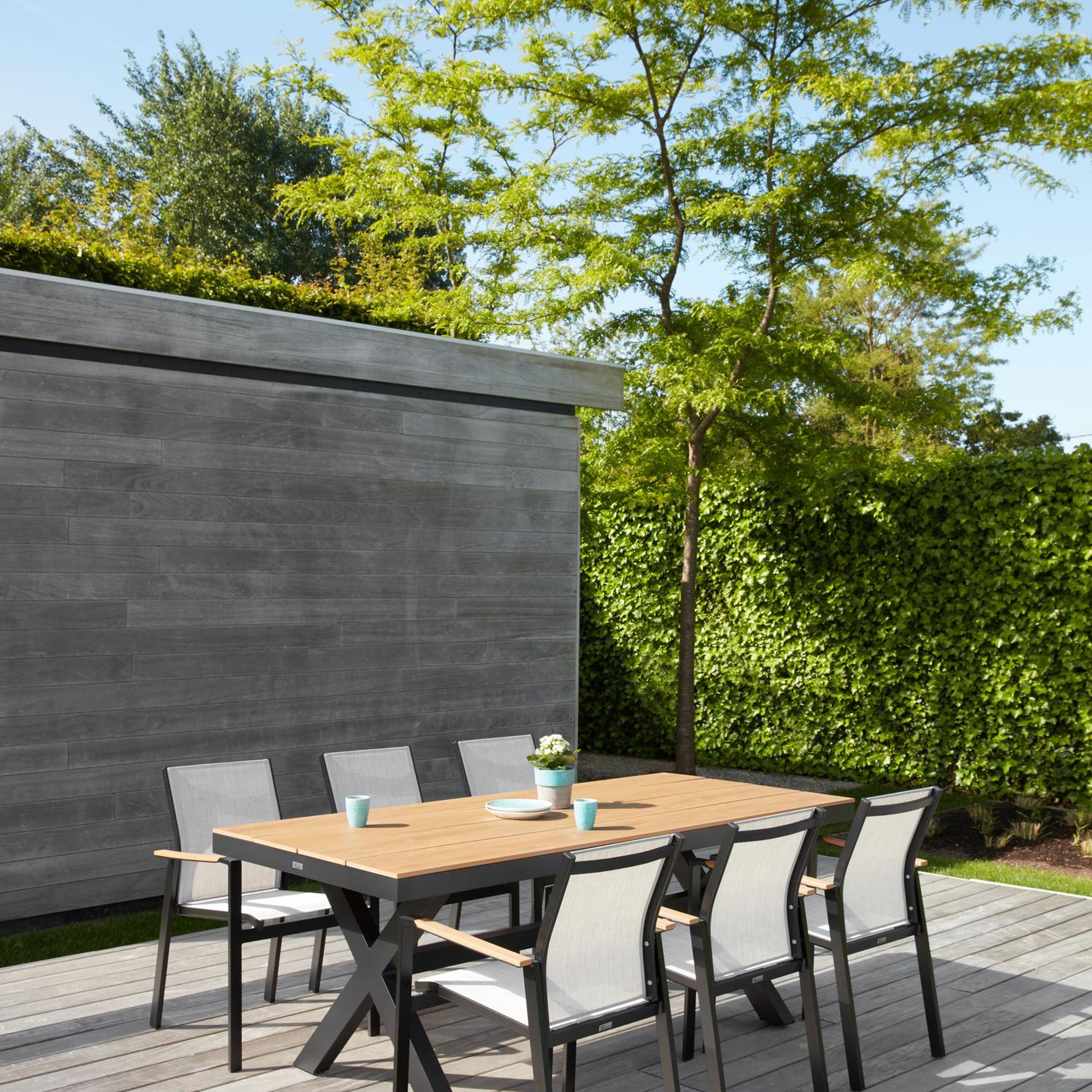 Het frame van de tafel is gemaakt uit roestvrij aluminium, een sterk, maar toch licht materiaal dat makkelijk verplaatsbaar is. Het oppervlak is glad afgewerkt waardoor het geen vuil aantrekt en onderhoudsvriendelijk is. De poedercoating zorgt voor de UV- en weerbestendigheid van je meubel.
