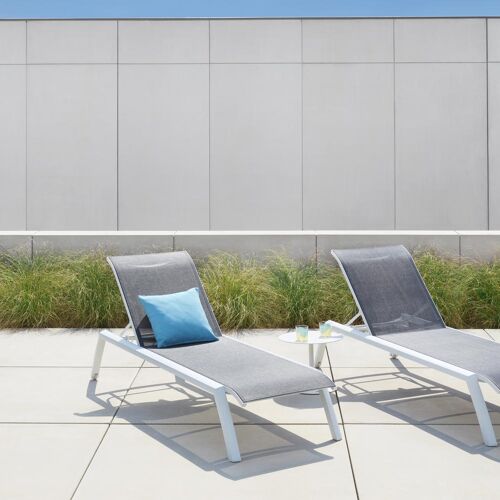Het frame is gemaakt uit roestvrij aluminium, een sterk, maar toch licht materiaal dat verplaatsbaar is. Het oppervlak is glad afgewerkt waardoor het geen vuil aantrekt en onderhoudsvriendelijk is. De poedercoating zorgt voor de UV- en weerbestendigheid van je meubel.