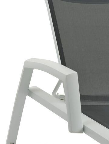Het frame is gemaakt uit roestvrij aluminium, een sterk, maar toch licht materiaal dat verplaatsbaar is. Het oppervlak is glad afgewerkt waardoor het geen vuil aantrekt en onderhoudsvriendelijk is. De poedercoating zorgt voor de UV- en weerbestendigheid van je meubel.