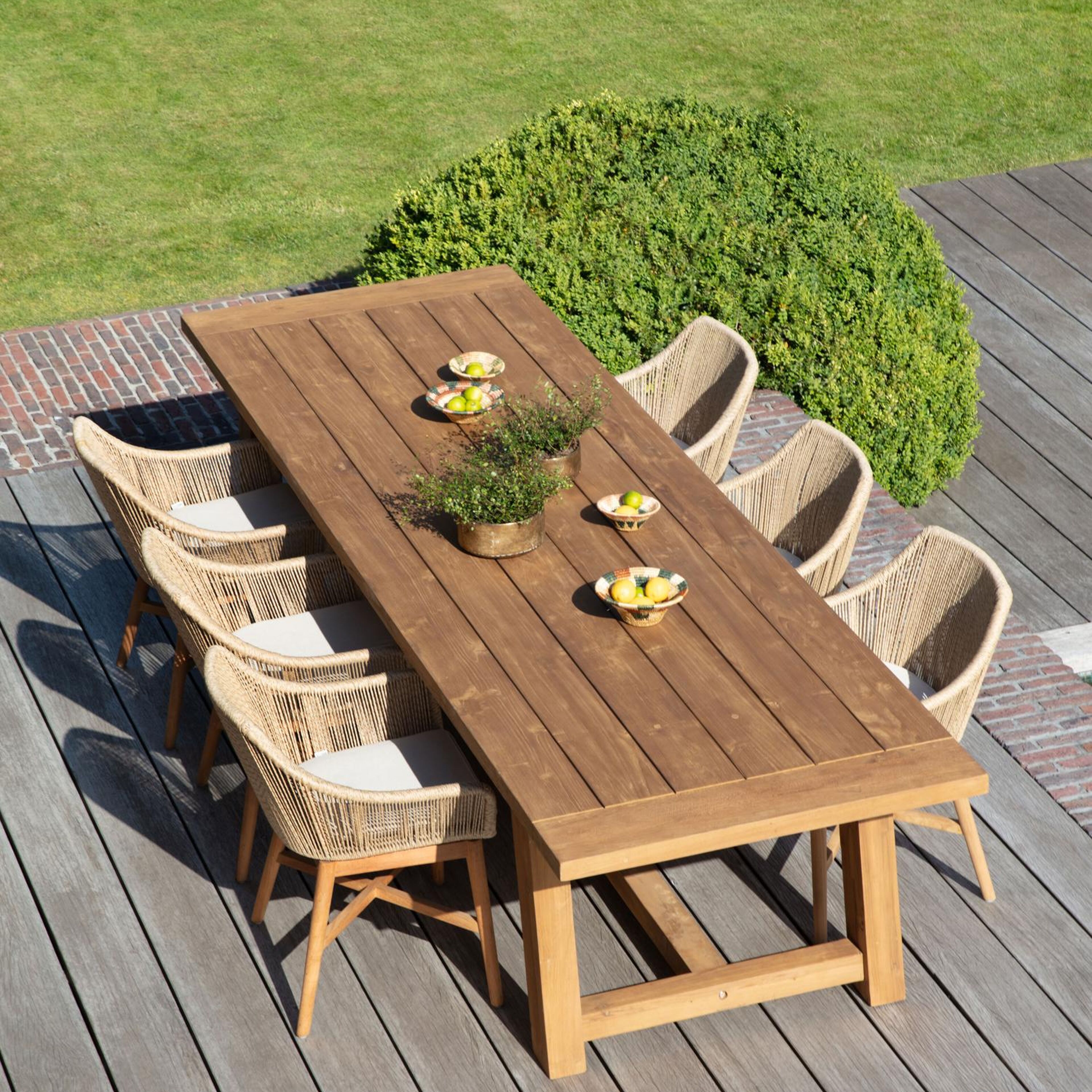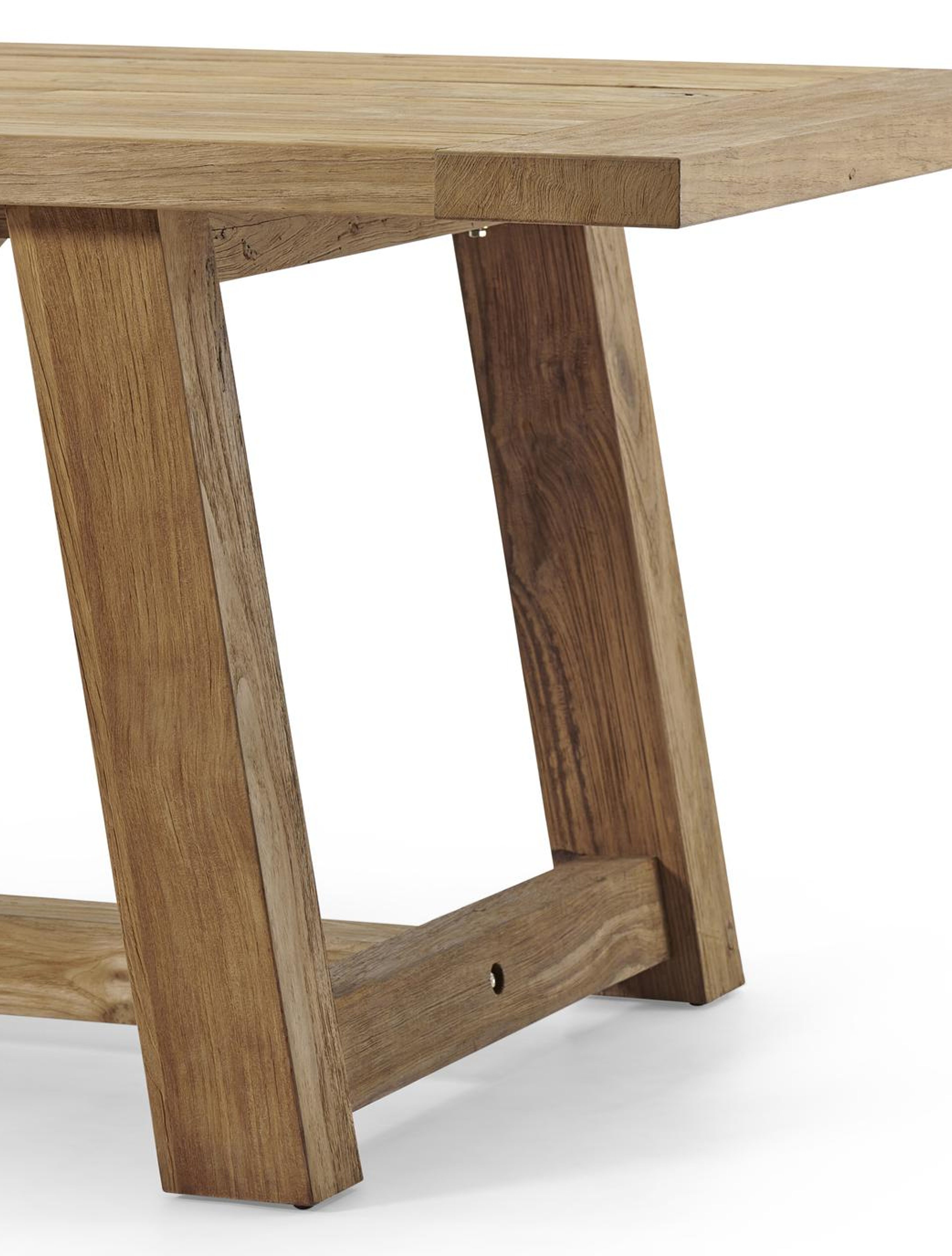 De Beauville tafel is een perfecte match voor wie houdt van een landelijke stijl. De tafel is gemaakt van gerecycleerd teak, dit wil zeggen dat de tafels een unieke uitstraling hebben en dus kunnen verschillen van elkaar. Duurzaamheid heeft zo zijn charme waardoor er kenmerken van het oorspronkelijke teak zichtbaar kunnen zijn zoals inzetstukken, spijkergaten...