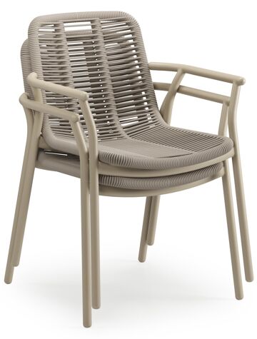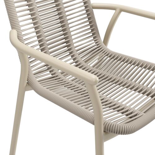 Berga tuinstoel in beige aluminium en beige verticaal geweven ronde rope | Exterioo
