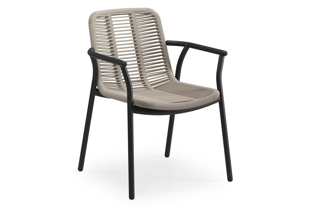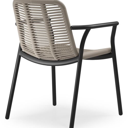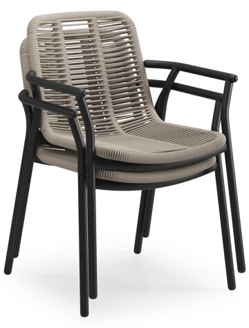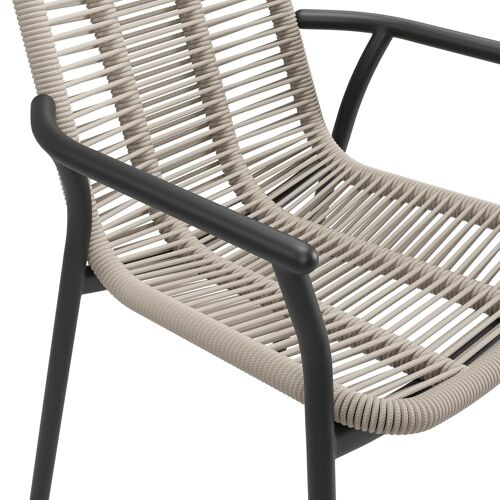 Berga tuinstoel in zwart aluminium en beige verticaal geweven ronde rope | Exterioo
