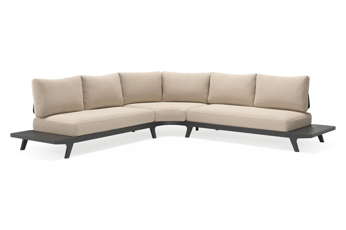 Bolzano loungehoek in zwart aluminium met rustic weather+ softtouch kussens | Exterioo