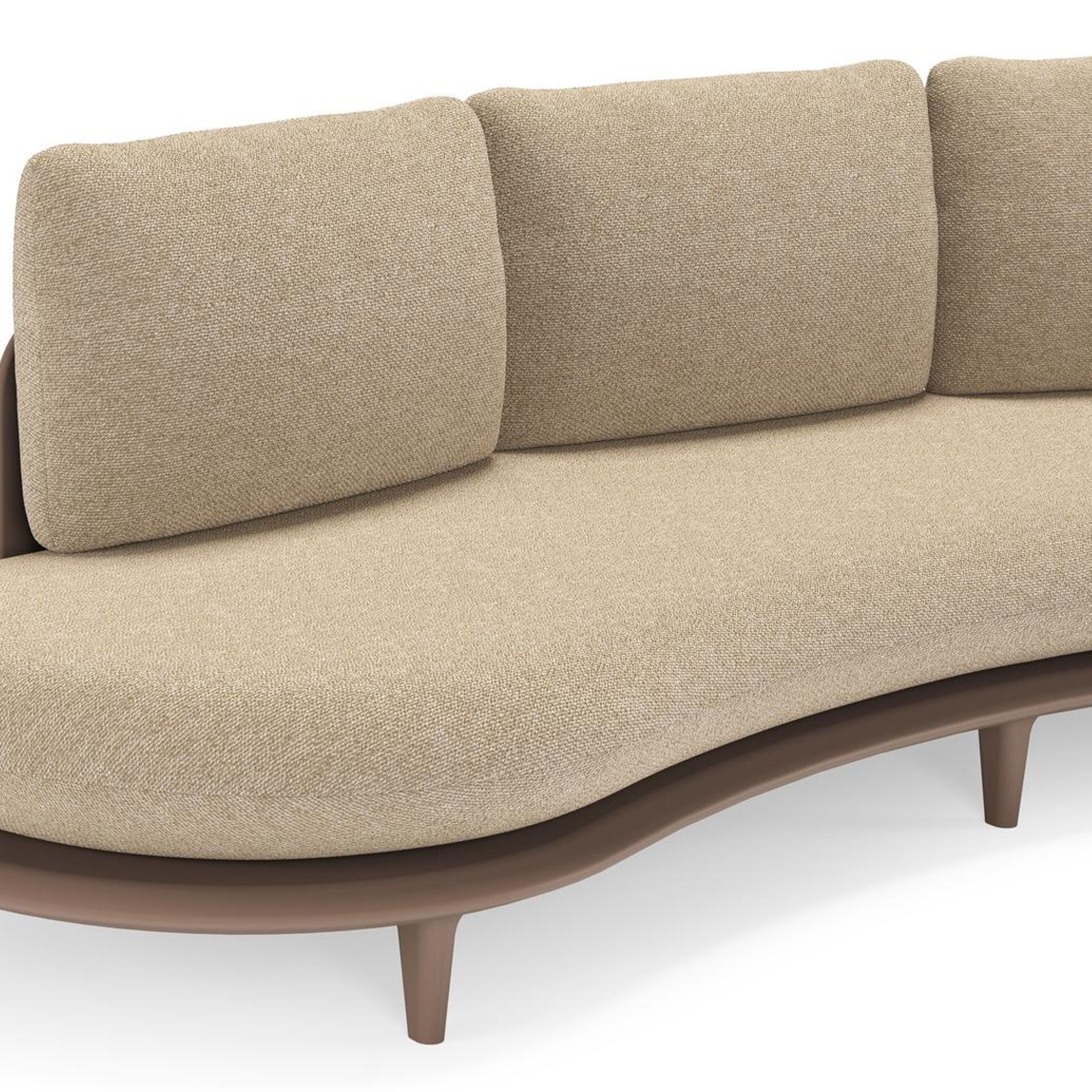 Bomero loungebank in taupe aluminium met madagascar oak all weather cosytica kussen | Exterioo tuinmeubelen