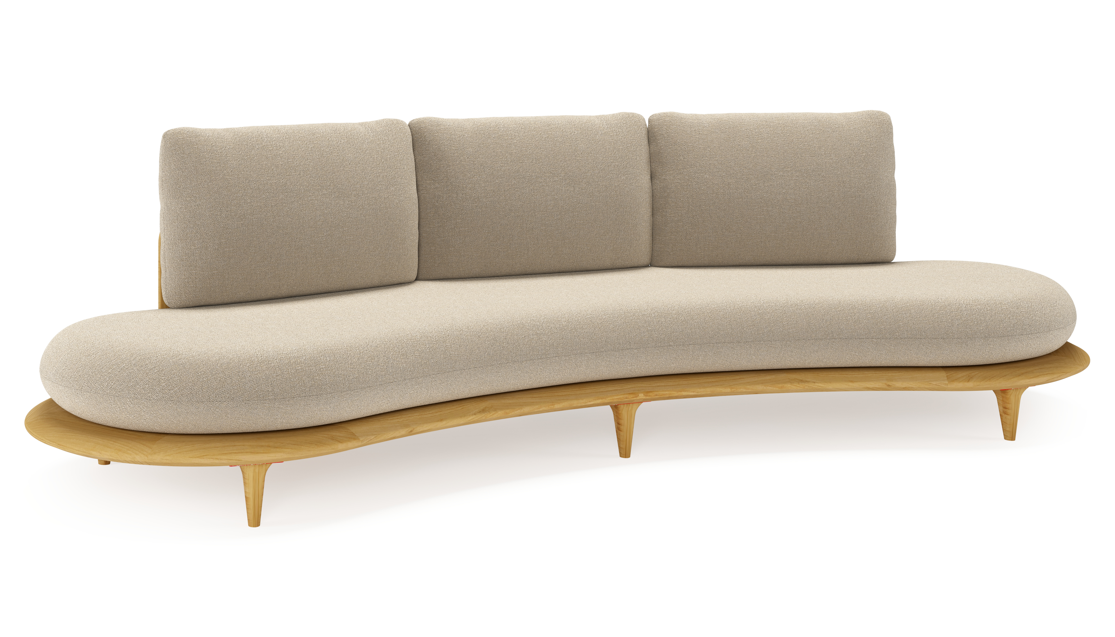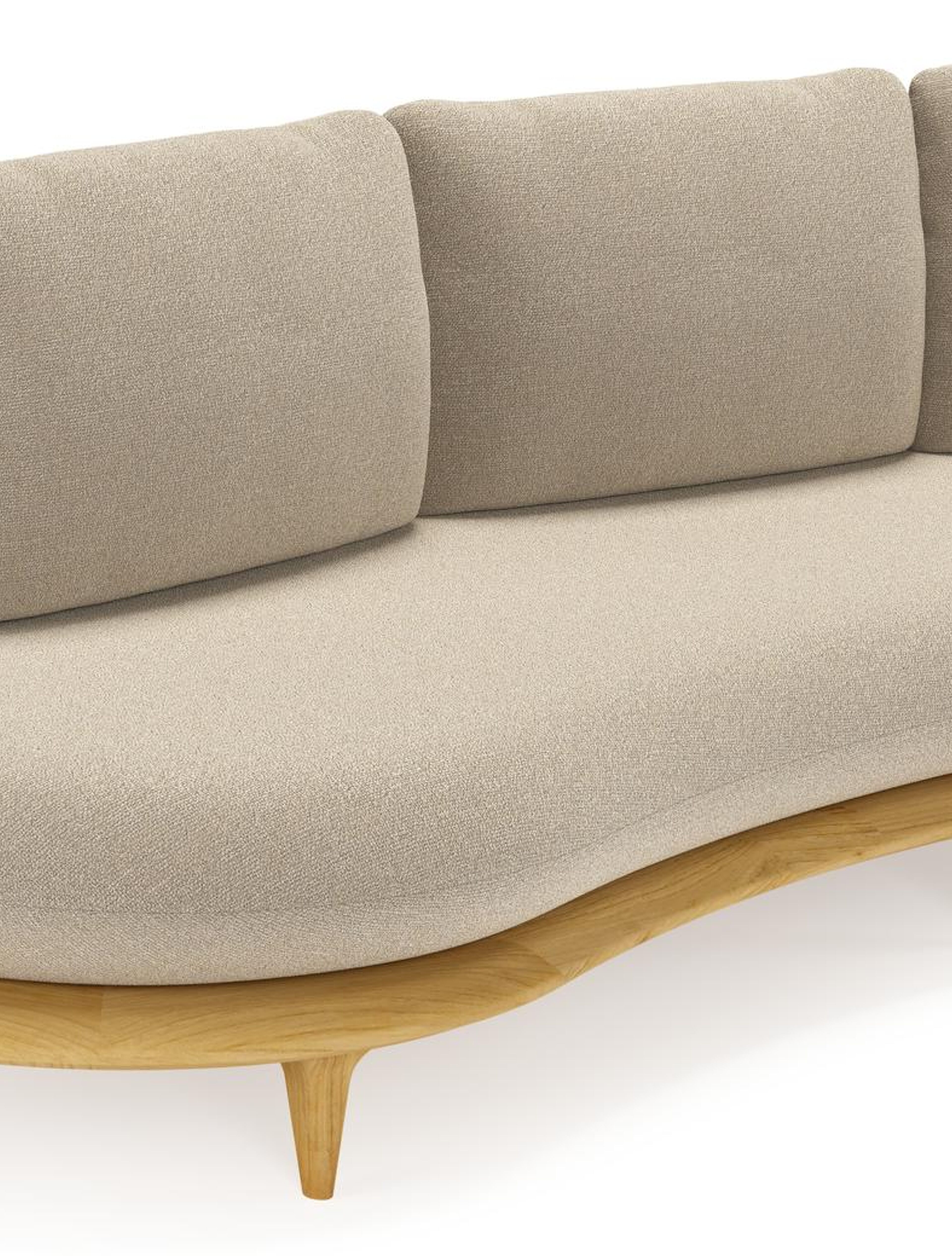 Bomero loungebank in teak met marbella sand all weather cosytica kussen | Exterioo tuinmeubelen