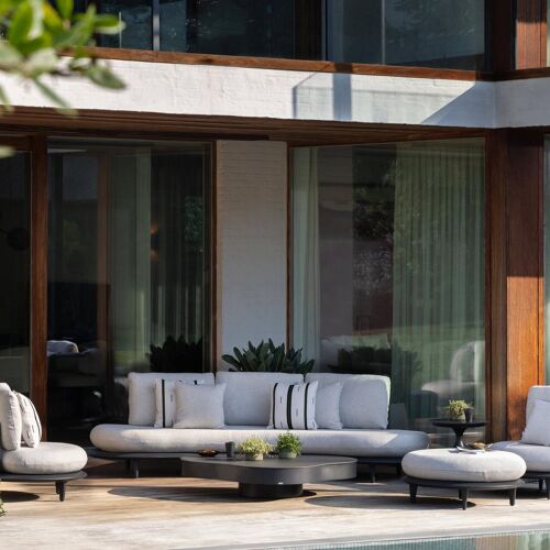 Bomero loungebank in zwart aluminium met savane coconut all weather sunbrella® luxe kussen | Exterioo
