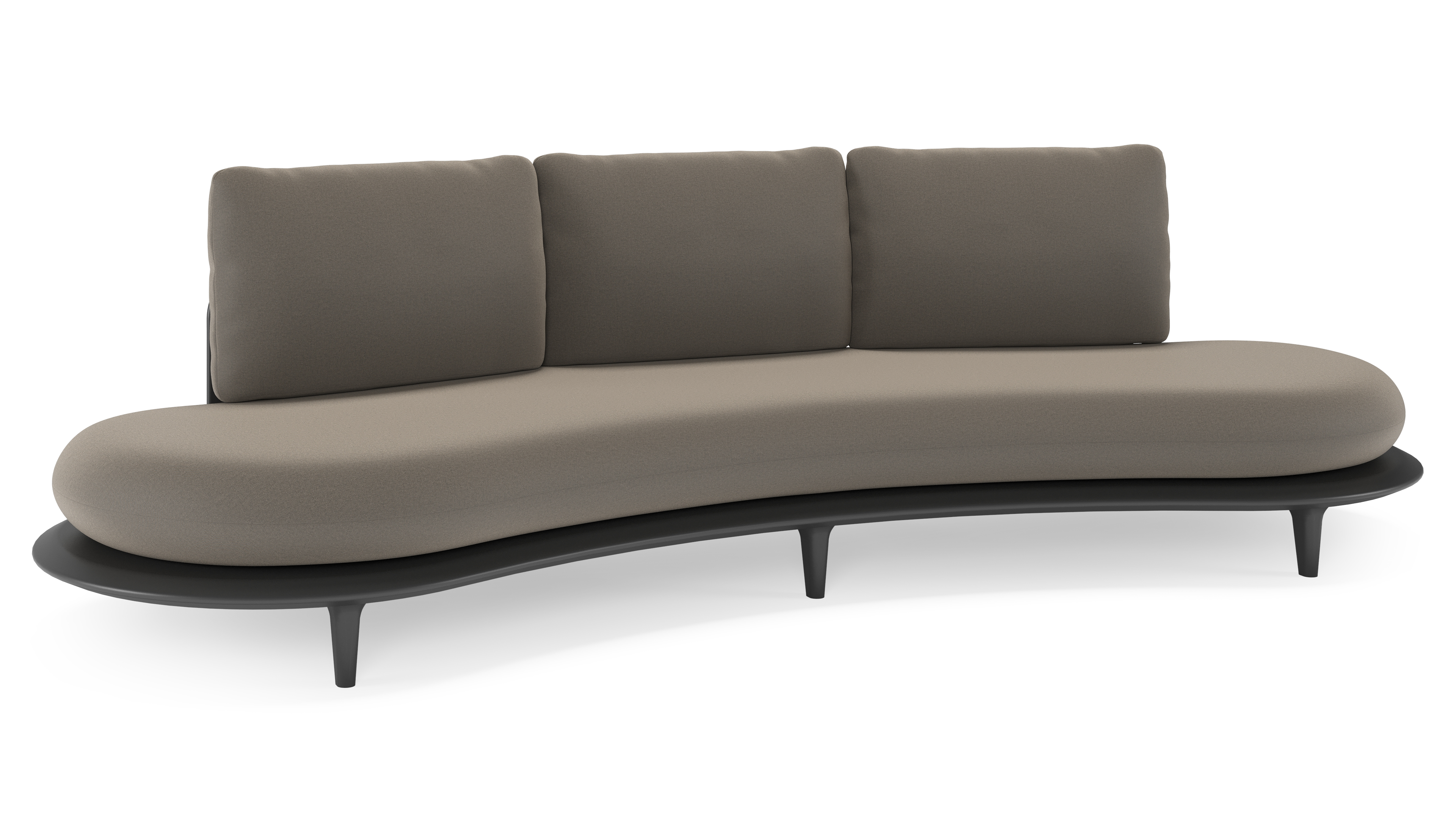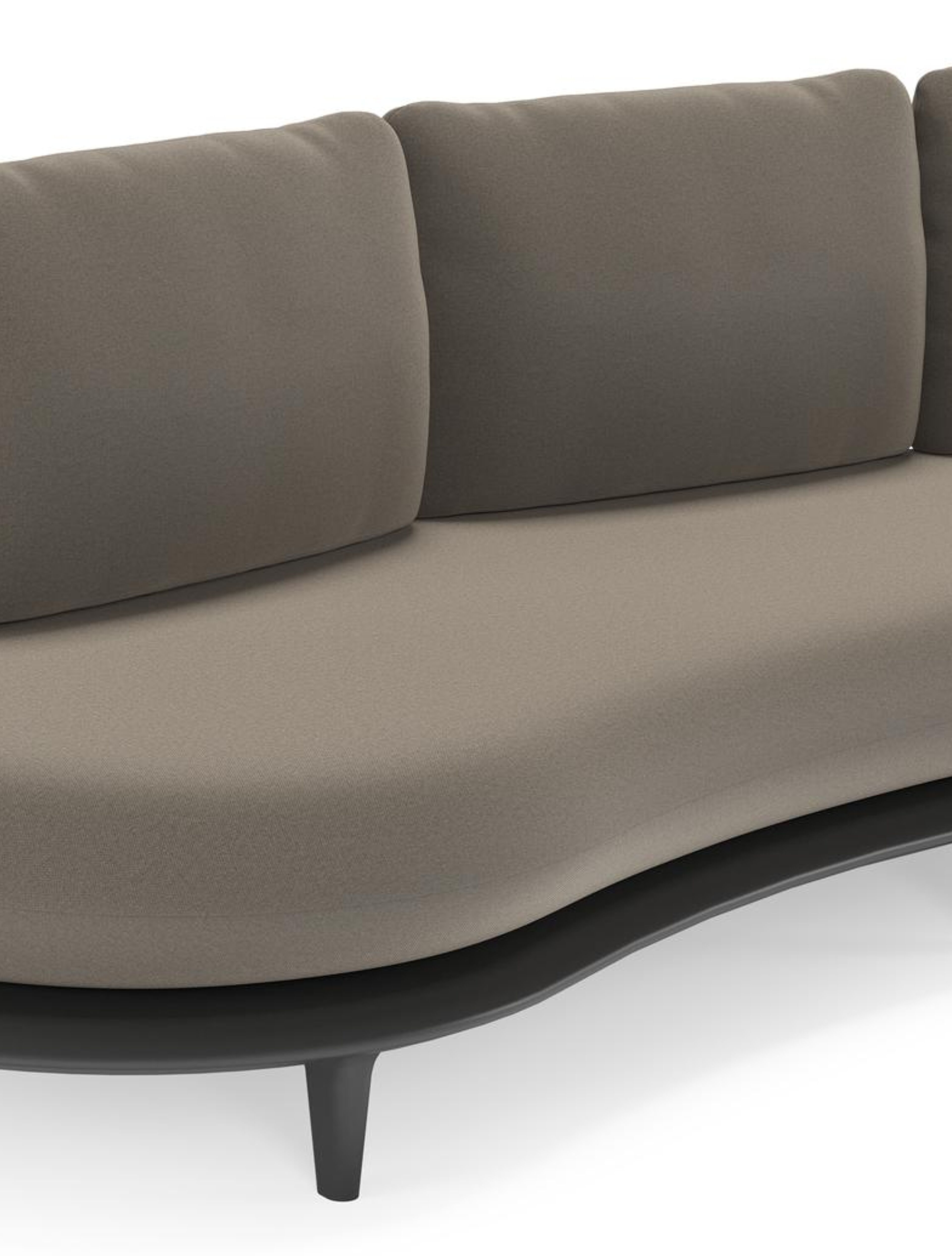 Bomero loungebank in zwart aluminium met natte carbon beige all weather sunbrella® luxe kussen | Exterioo tuinmeubelen
