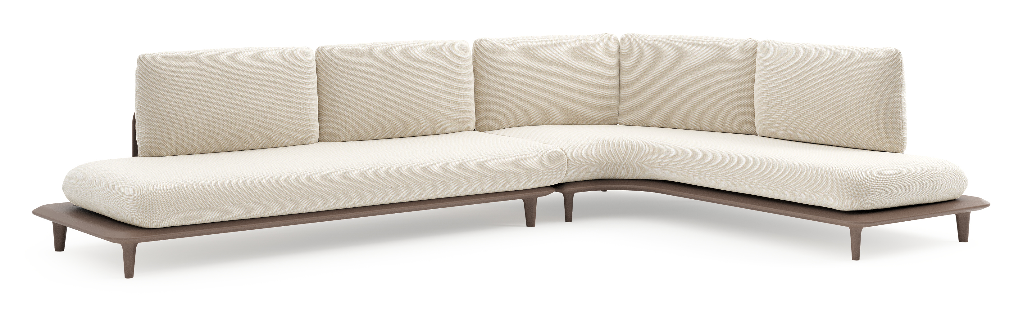Bomero loungehoek in taupe aluminium met althea off white all weather cosytica kussen | Exterioo tuinmeubelen