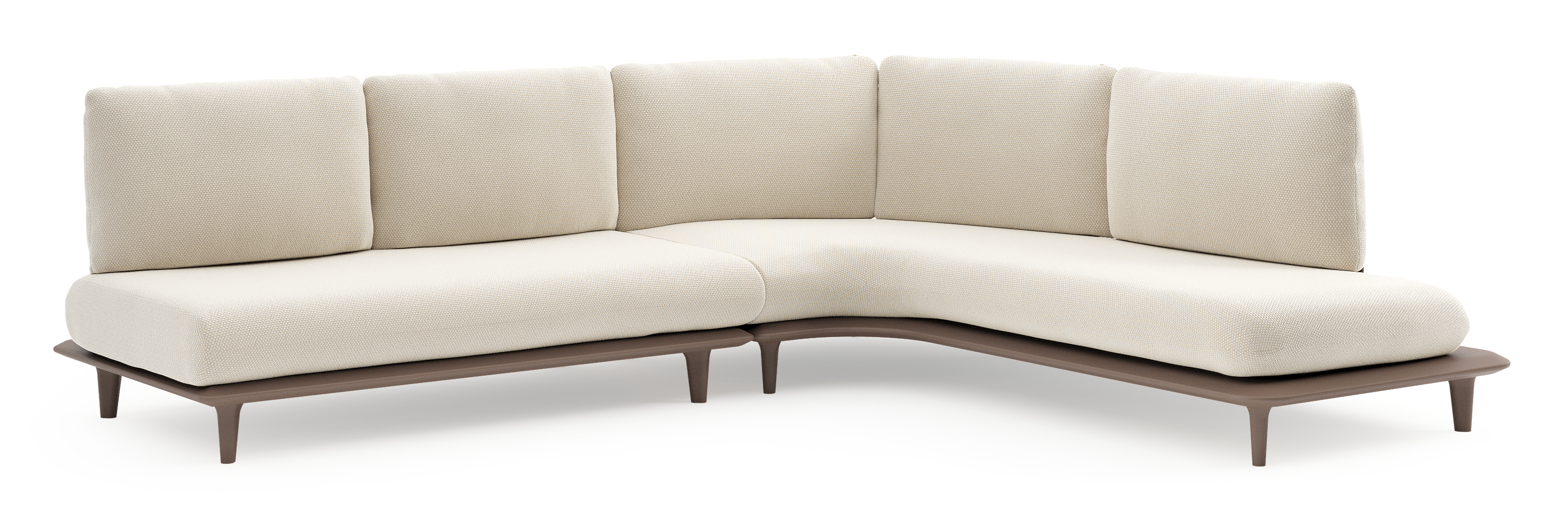 Bomero loungehoek in taupe aluminium met althea off white all weather cosytica kussen | Exterioo tuinmeubelen