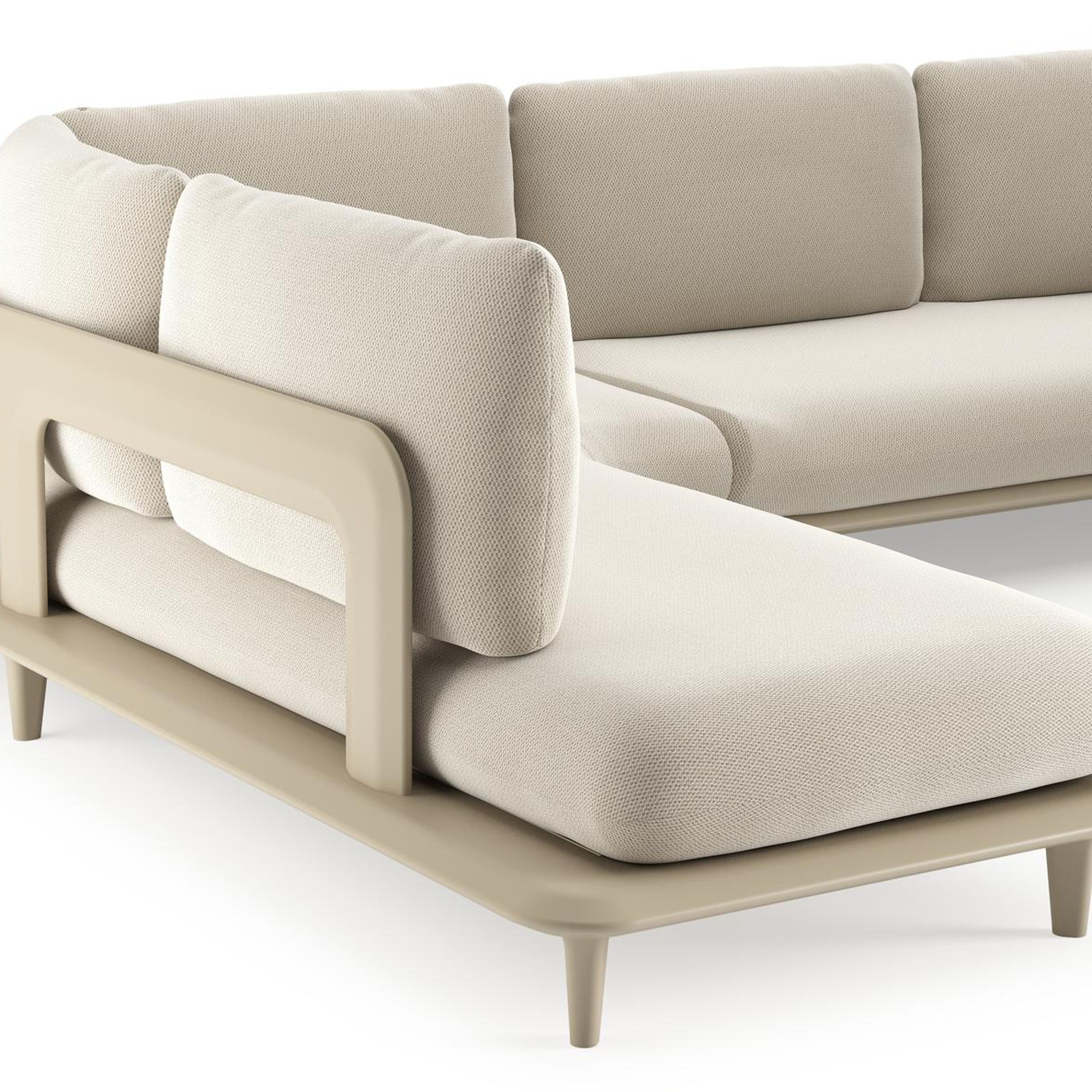 Bomero loungehoek in beige aluminium met lopi marble all weather sunbrella® luxe kussen | Exterioo tuinmeubelen