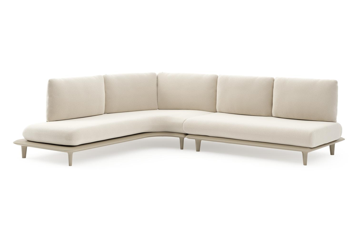 Bomero loungehoek in beige aluminium met althea off white all weather cosytica kussen | Exterioo