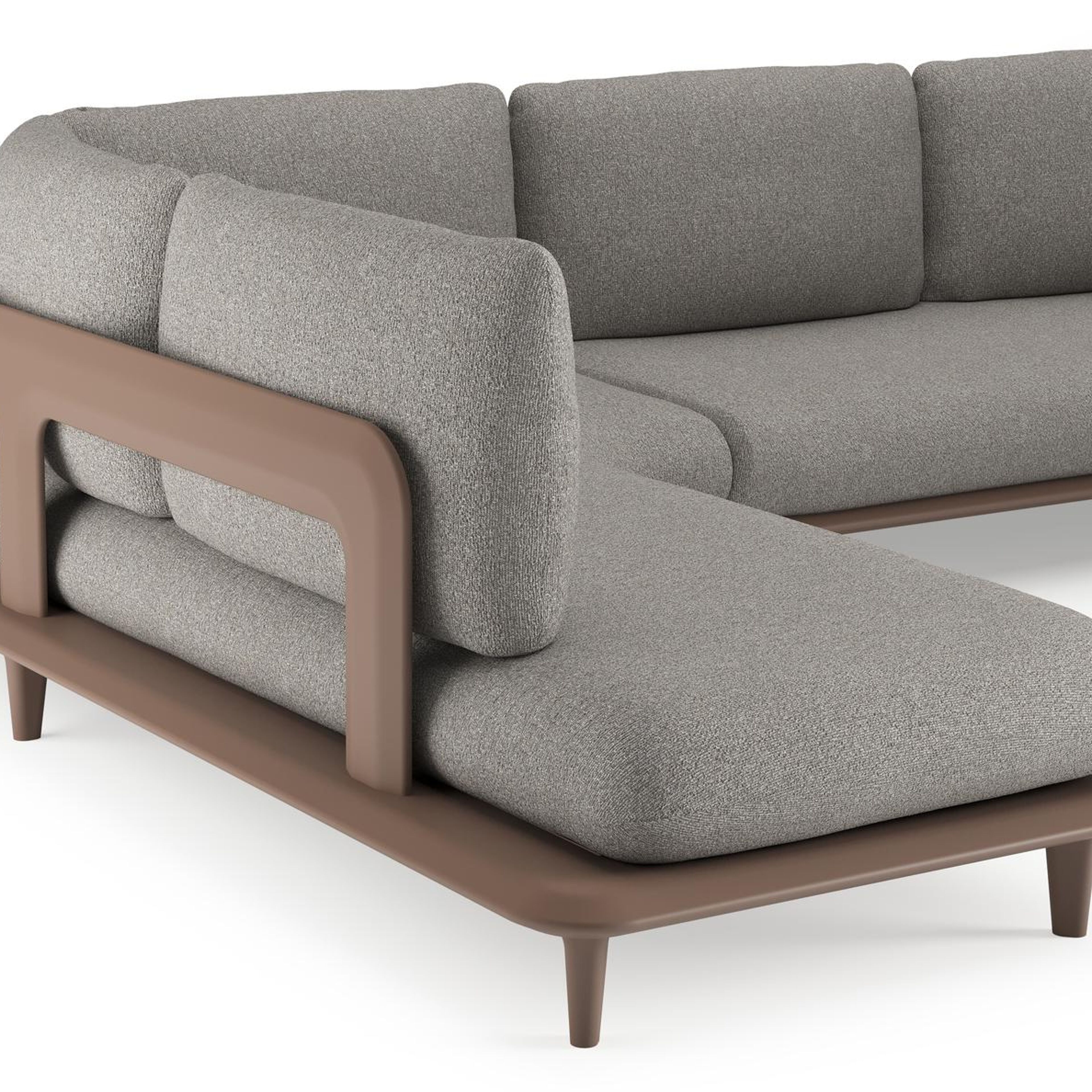 Bomero loungehoek in taupe aluminium met tundra charcoal all weather sunbrella® luxe kussen | Exterioo tuinmeubelen