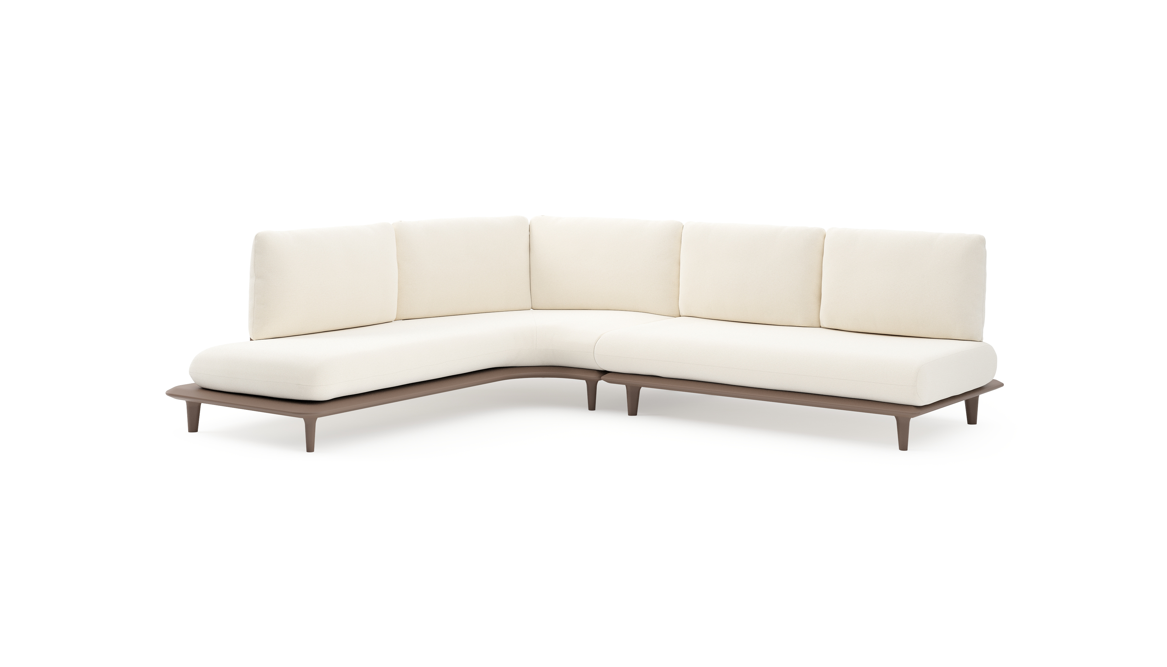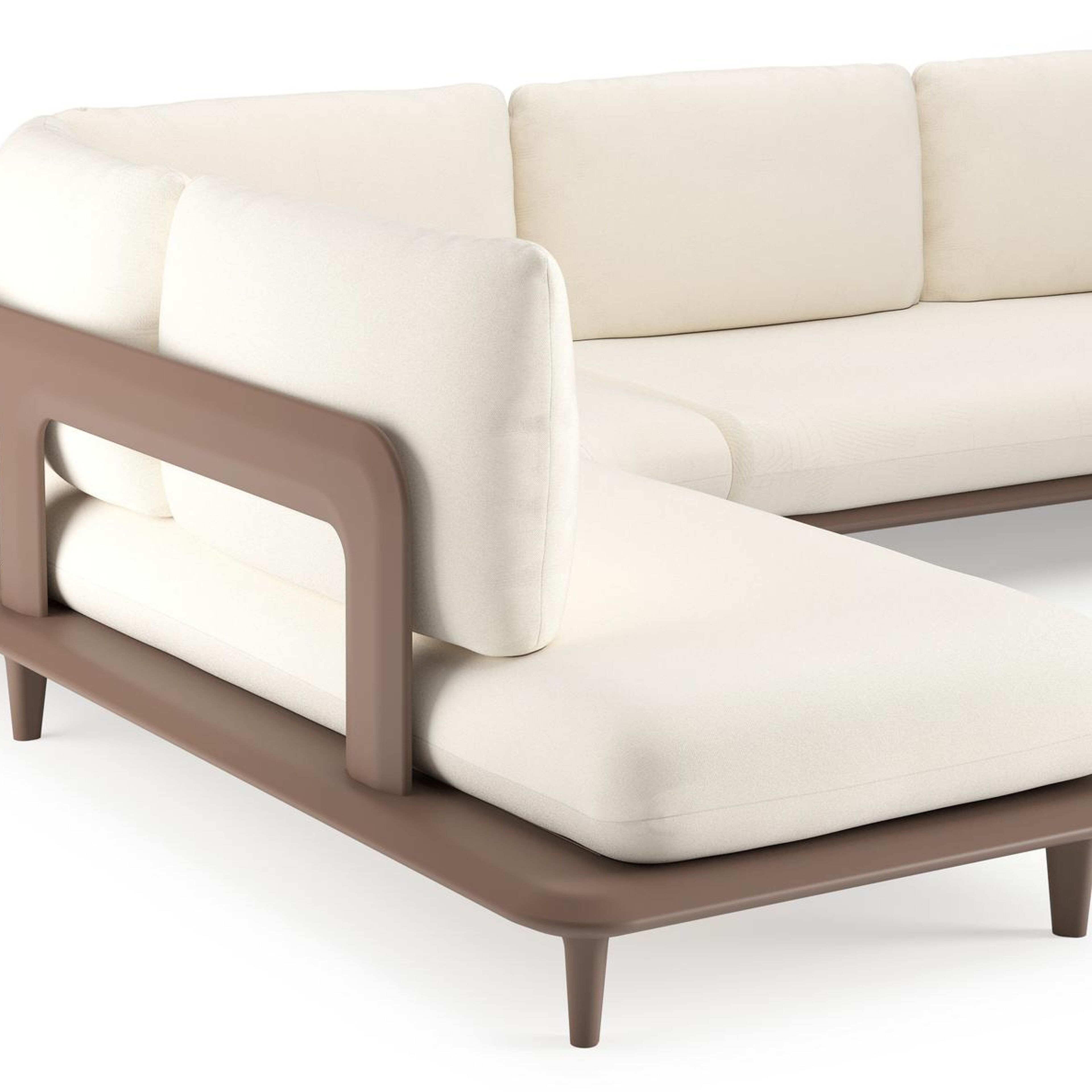 Bomero loungehoek in taupe aluminium met natte white all weather sunbrella® luxe kussen | Exterioo tuinmeubelen