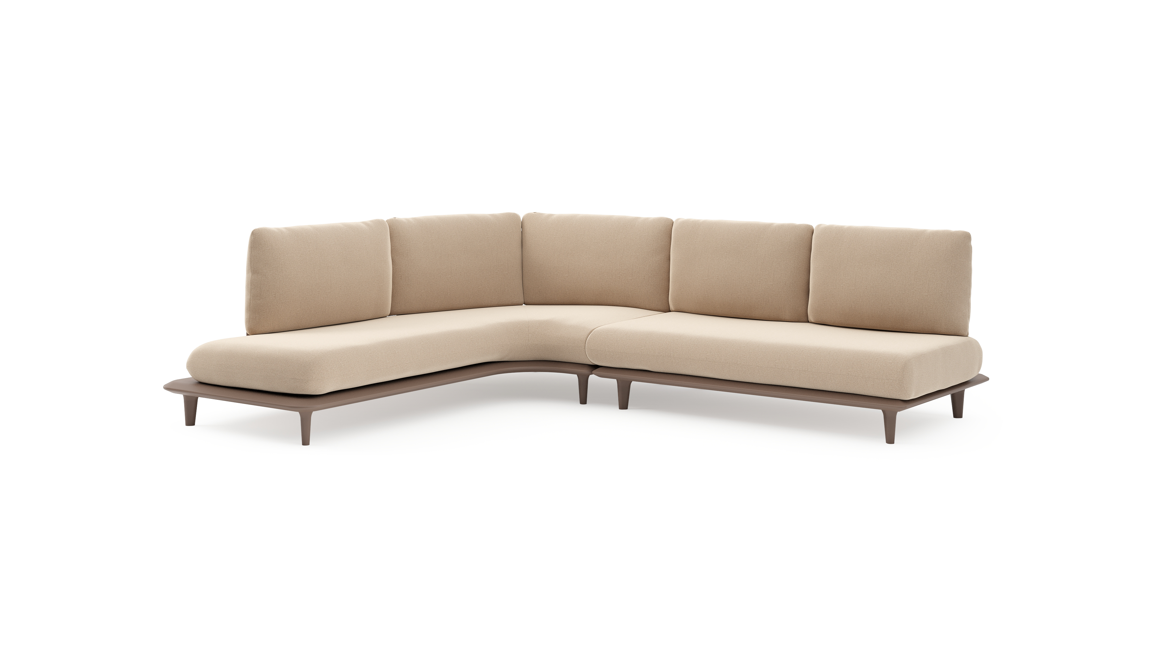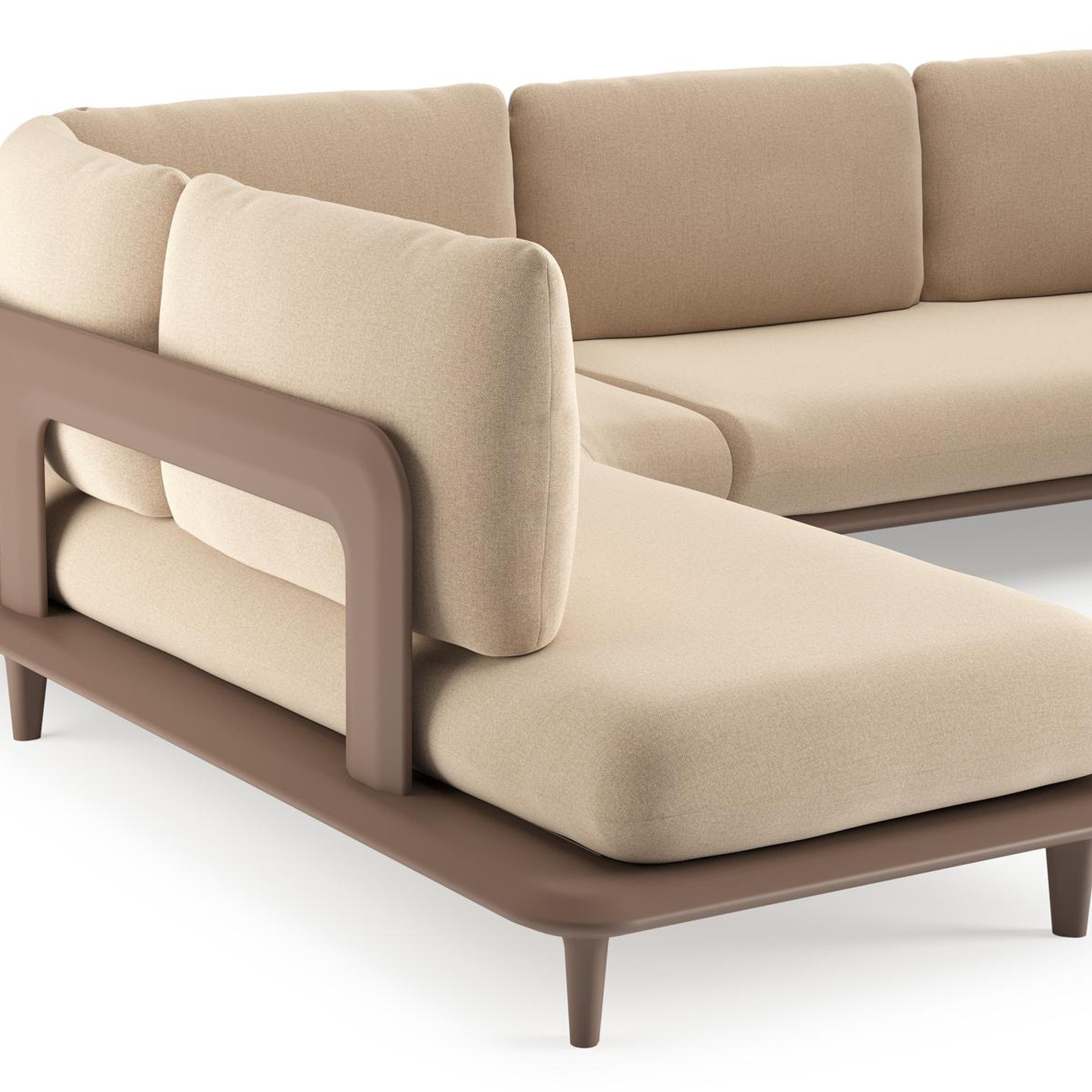 Bomero loungehoek in taupe aluminium met natte heather beige all weather sunbrella® luxe kussen | Exterioo tuinmeubelen
