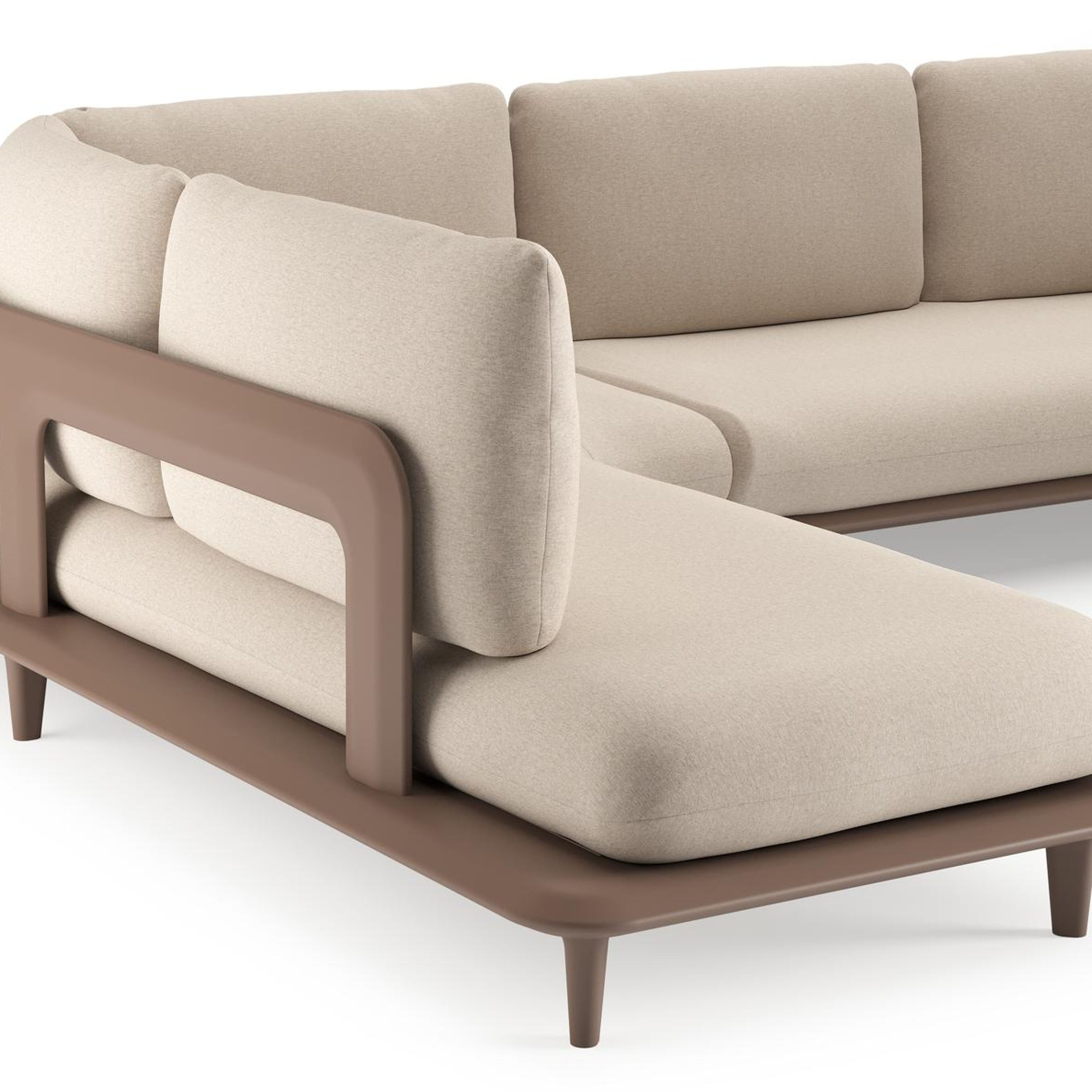 Bomero loungehoek in taupe aluminium met heritage ash all weather sunbrella® luxe kussen | Exterioo tuinmeubelen