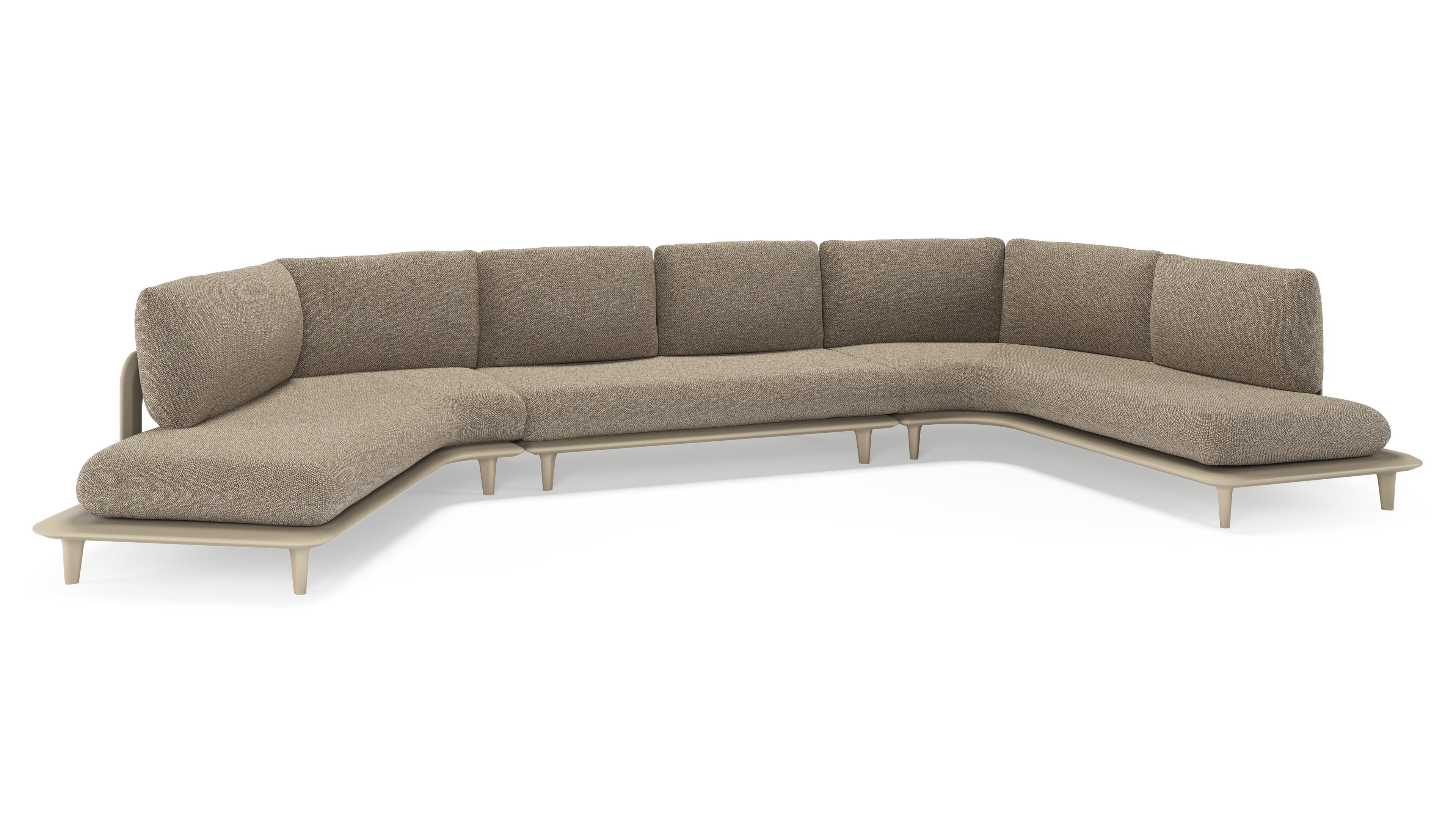 Bomero loungehoek in beige aluminium met madagascar burch all weather cosytica kussen | Exterioo tuinmeubelen