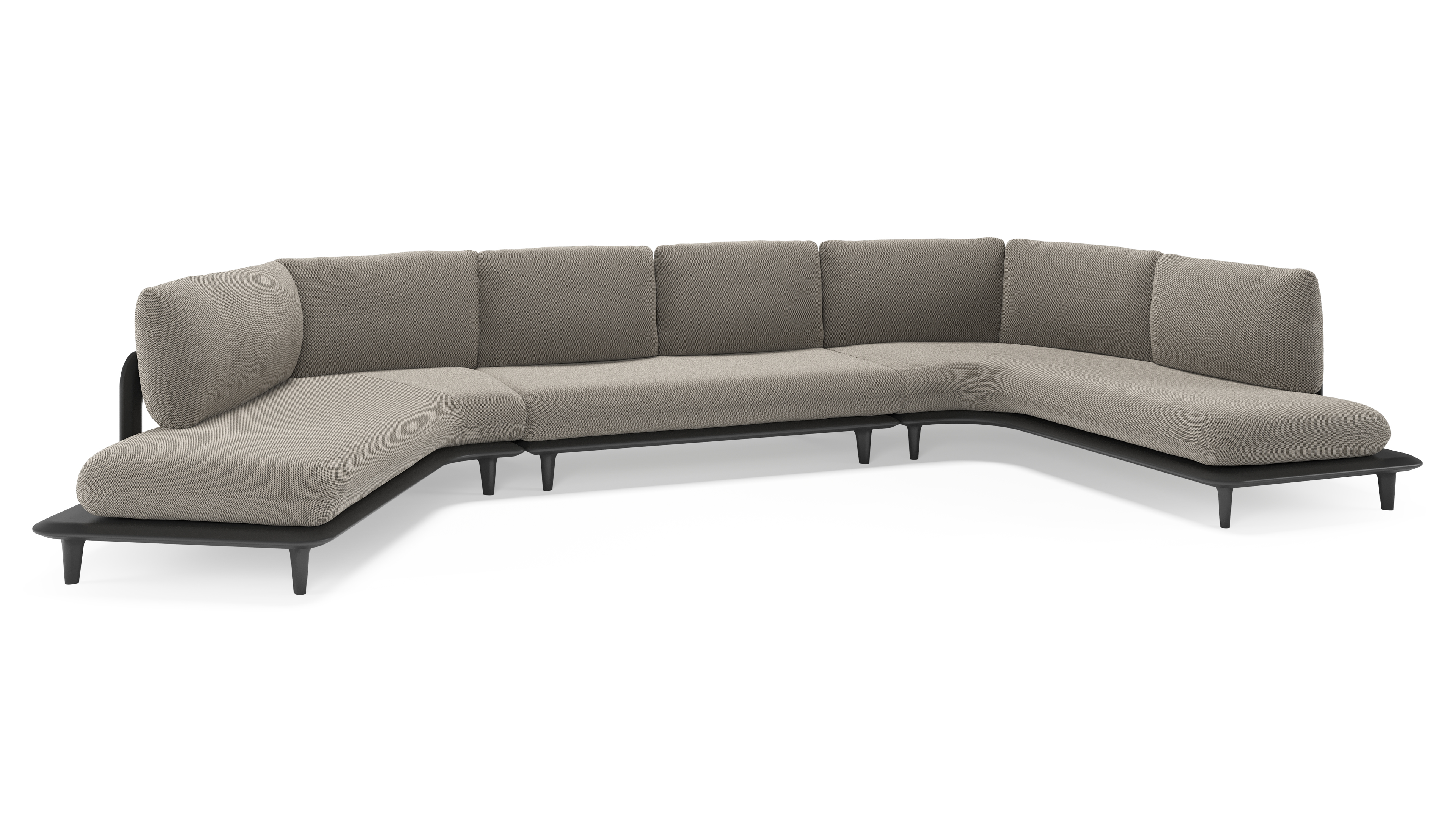 Bomero loungehoek in zwart aluminium met lopi charcoal all weather sunbrella® luxe kussen | Exterioo tuinmeubelen