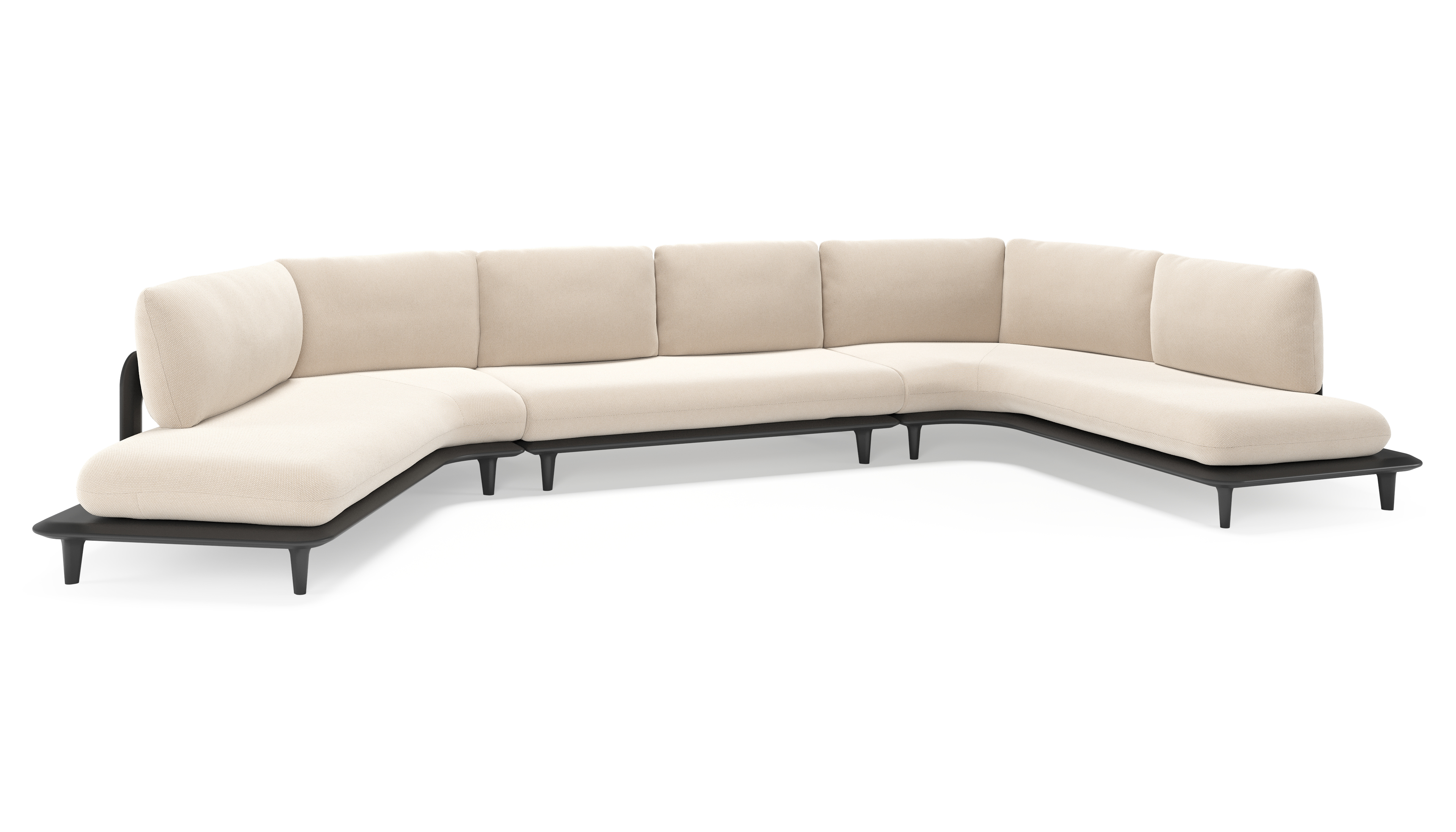 Bomero loungehoek in zwart aluminium met lopi antique all weather sunbrella® luxe kussen | Exterioo tuinmeubelen