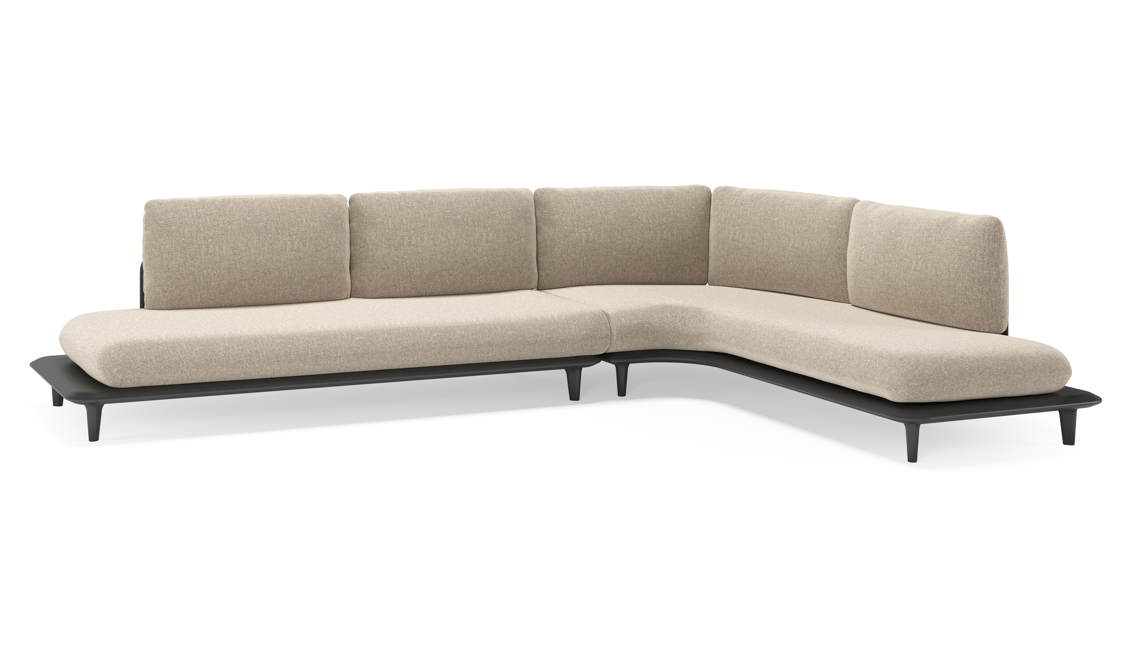 Bomero loungehoek in zwart aluminium met chartres pewter all weather sunbrella® luxe kussen | Exterioo tuinmeubelen