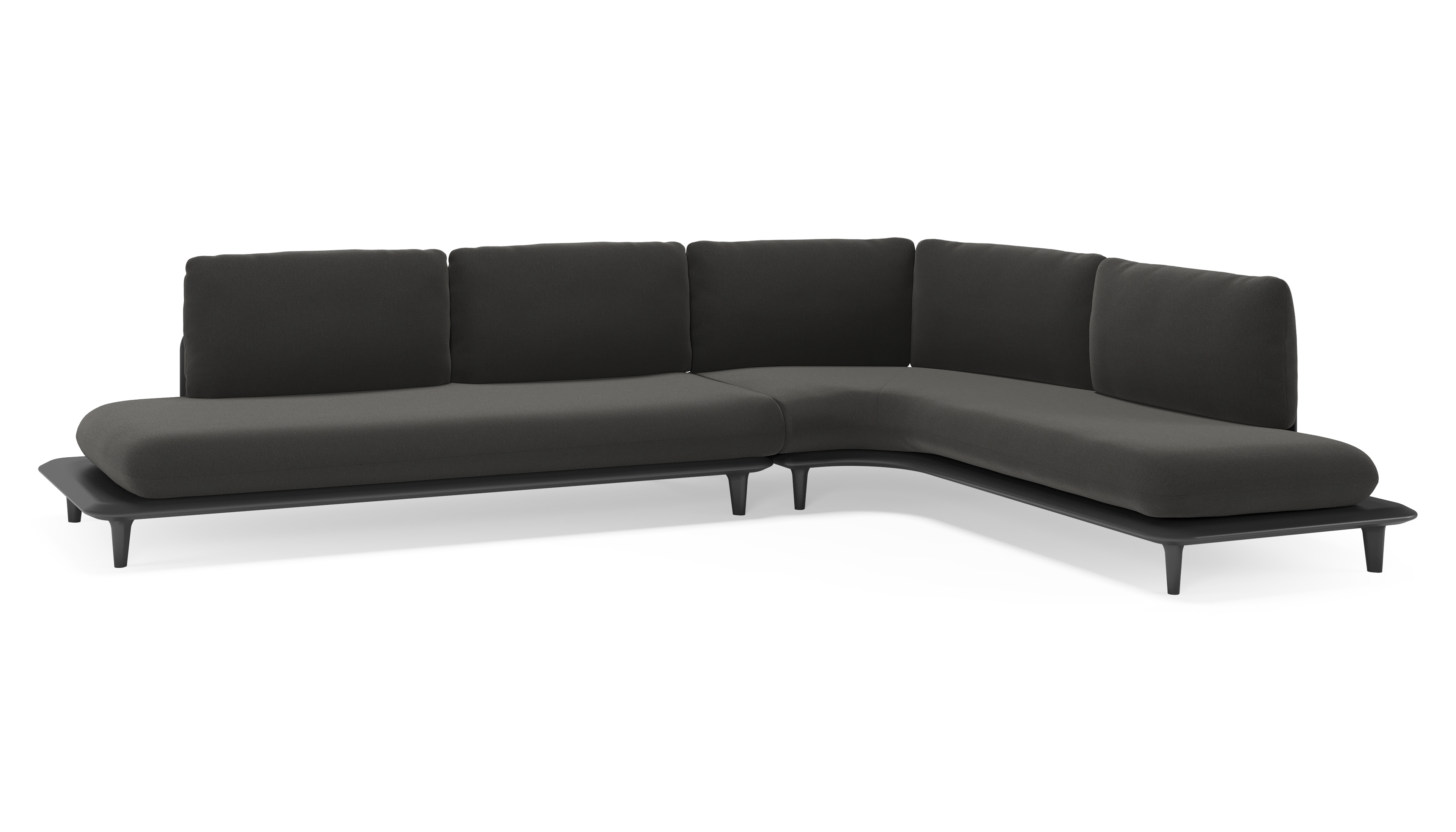 Bomero loungehoek in zwart aluminium met natte sooty all weather sunbrella® luxe kussen | Exterioo tuinmeubelen