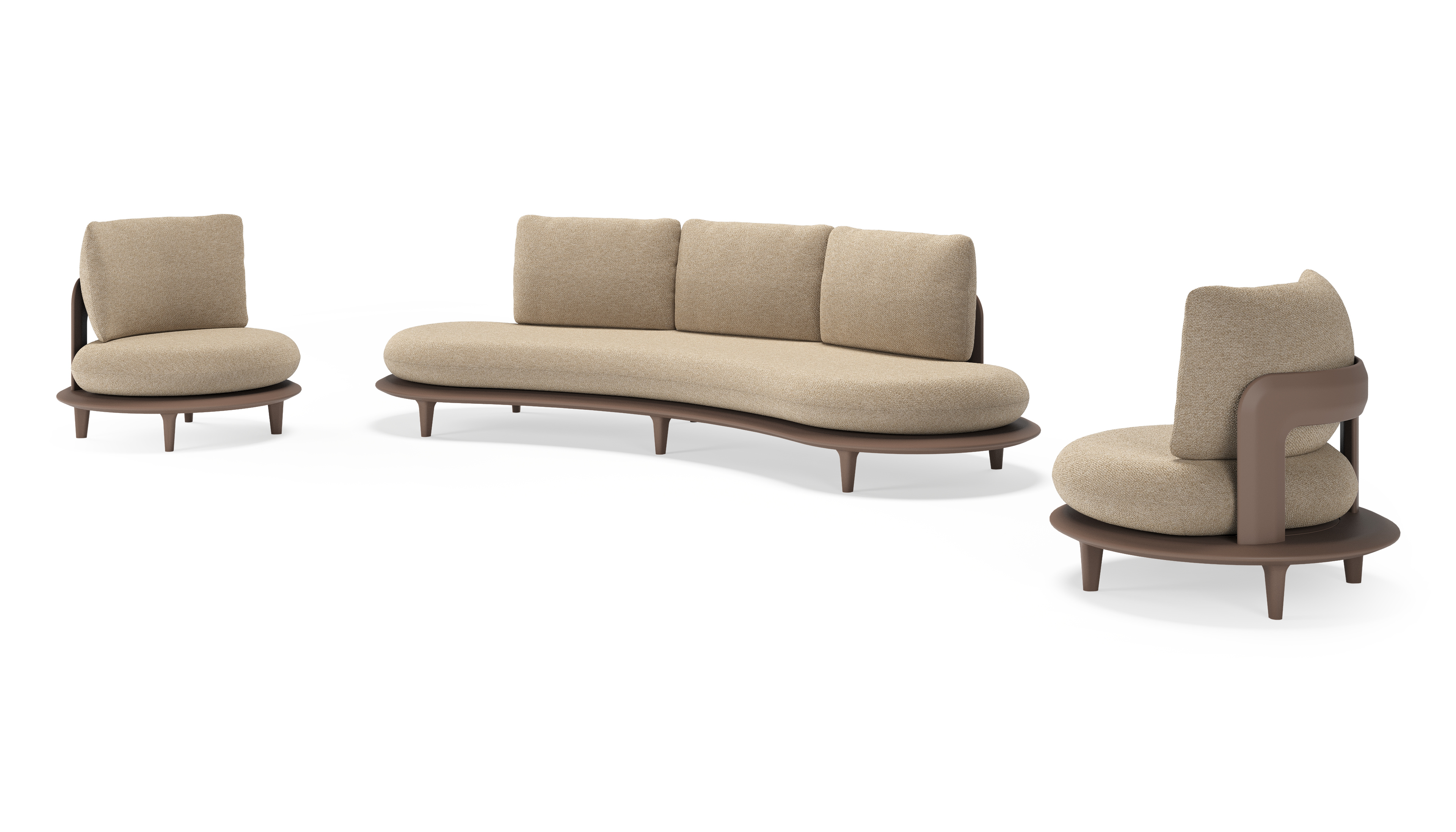 Bomero loungeset in taupe aluminium met madagascar oak all weather cosytica kussen | Exterioo tuinmeubelen