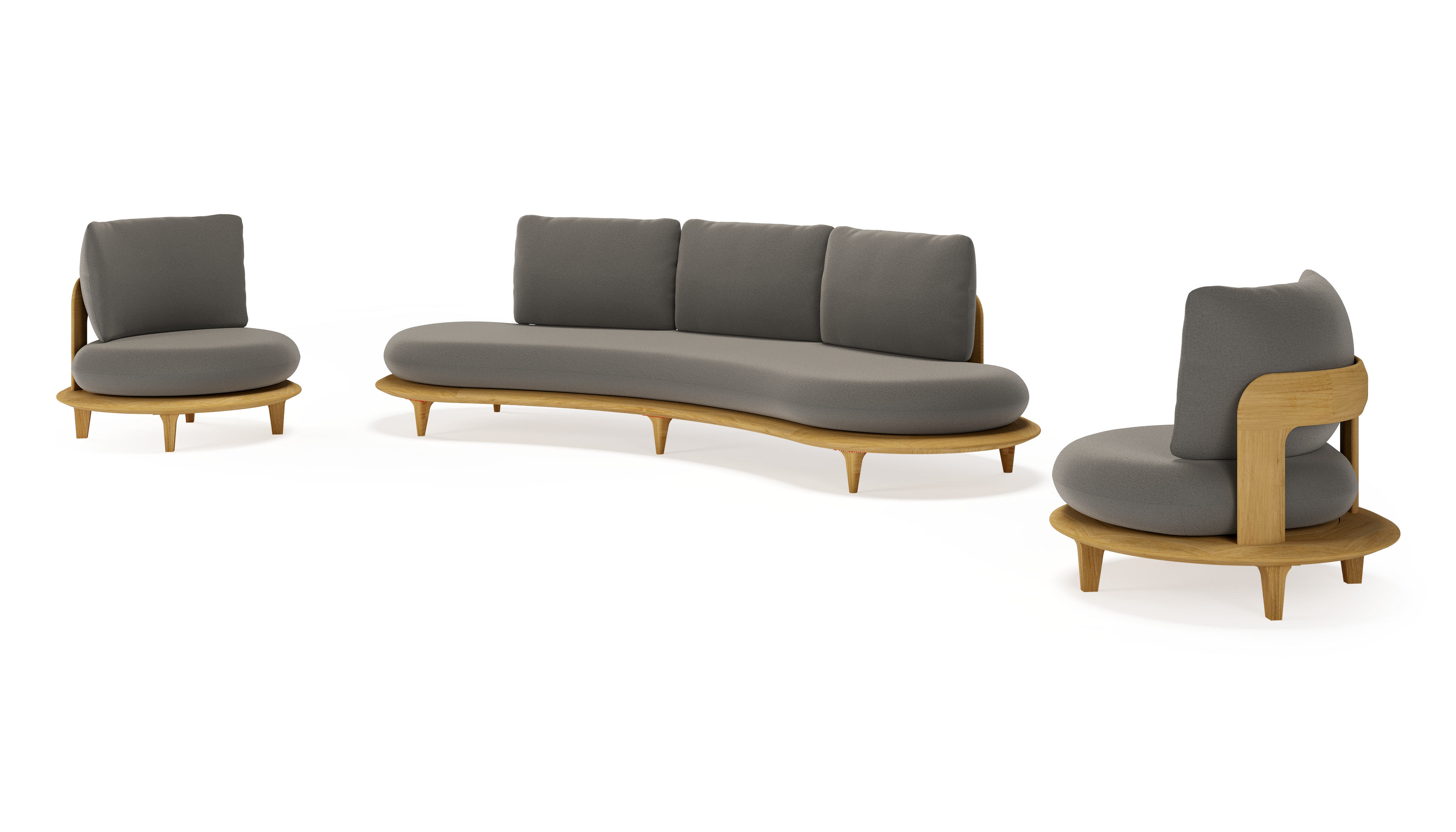 Bomero loungeset in teak met natte dark taupe all weather sunbrella® luxe kussen | Exterioo tuinmeubelen