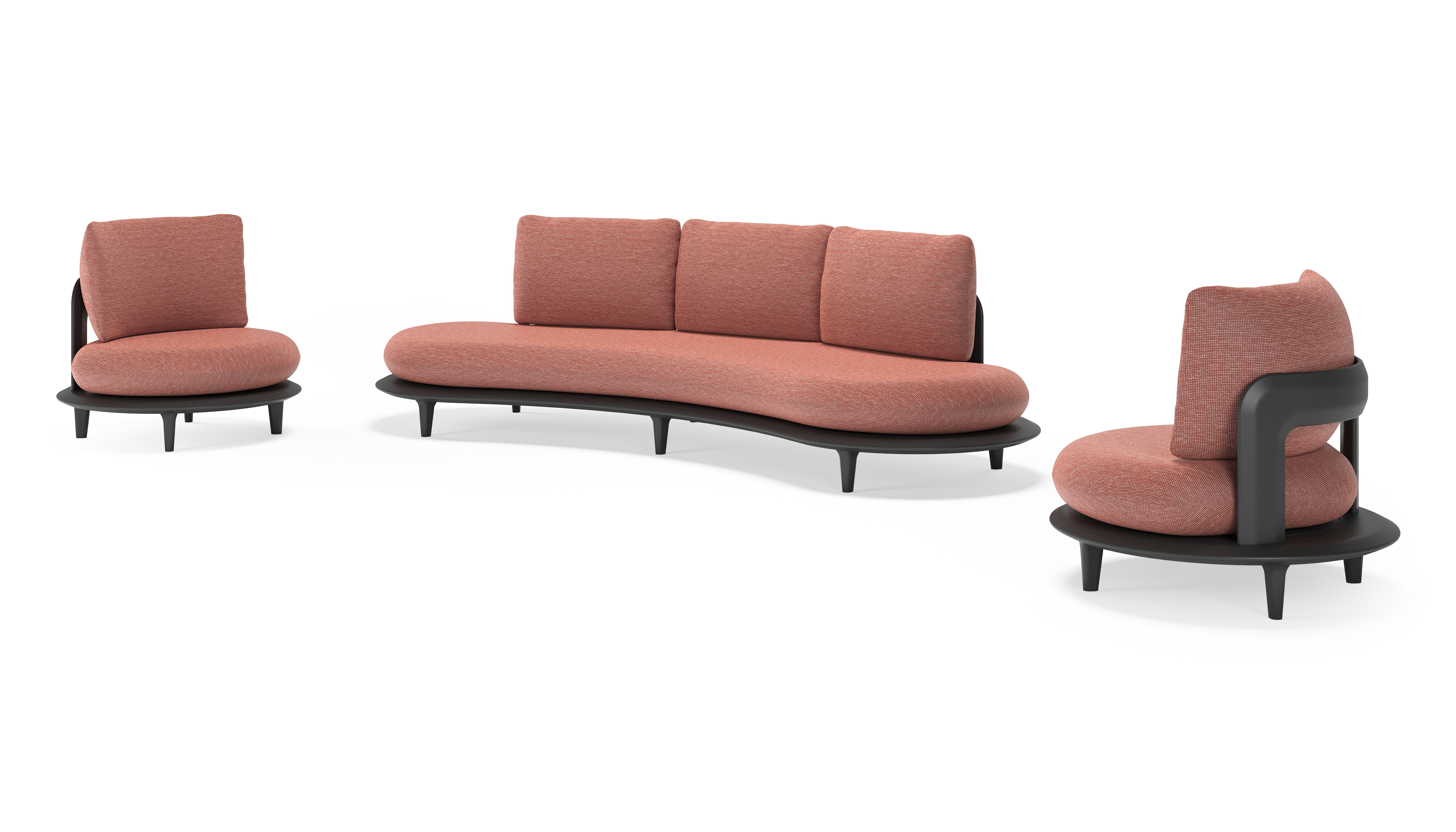 Bomero loungeset in zwart aluminium met slow alezan all weather sunbrella® luxe kussen | Exterioo tuinmeubelen