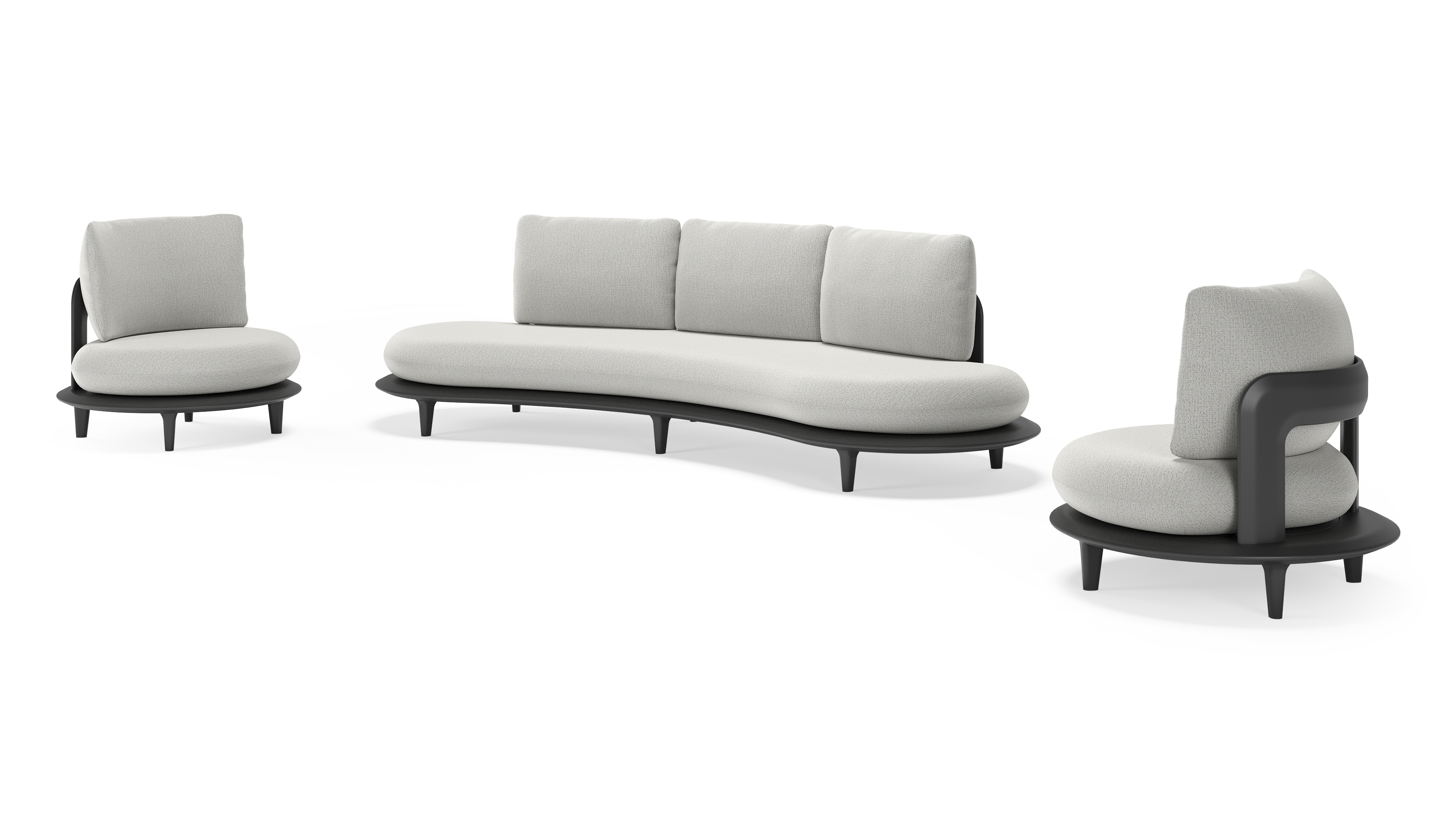 Bomero loungeset in zwart aluminium met savane nimbus all weather sunbrella® luxe kussen | Exterioo tuinmeubelen