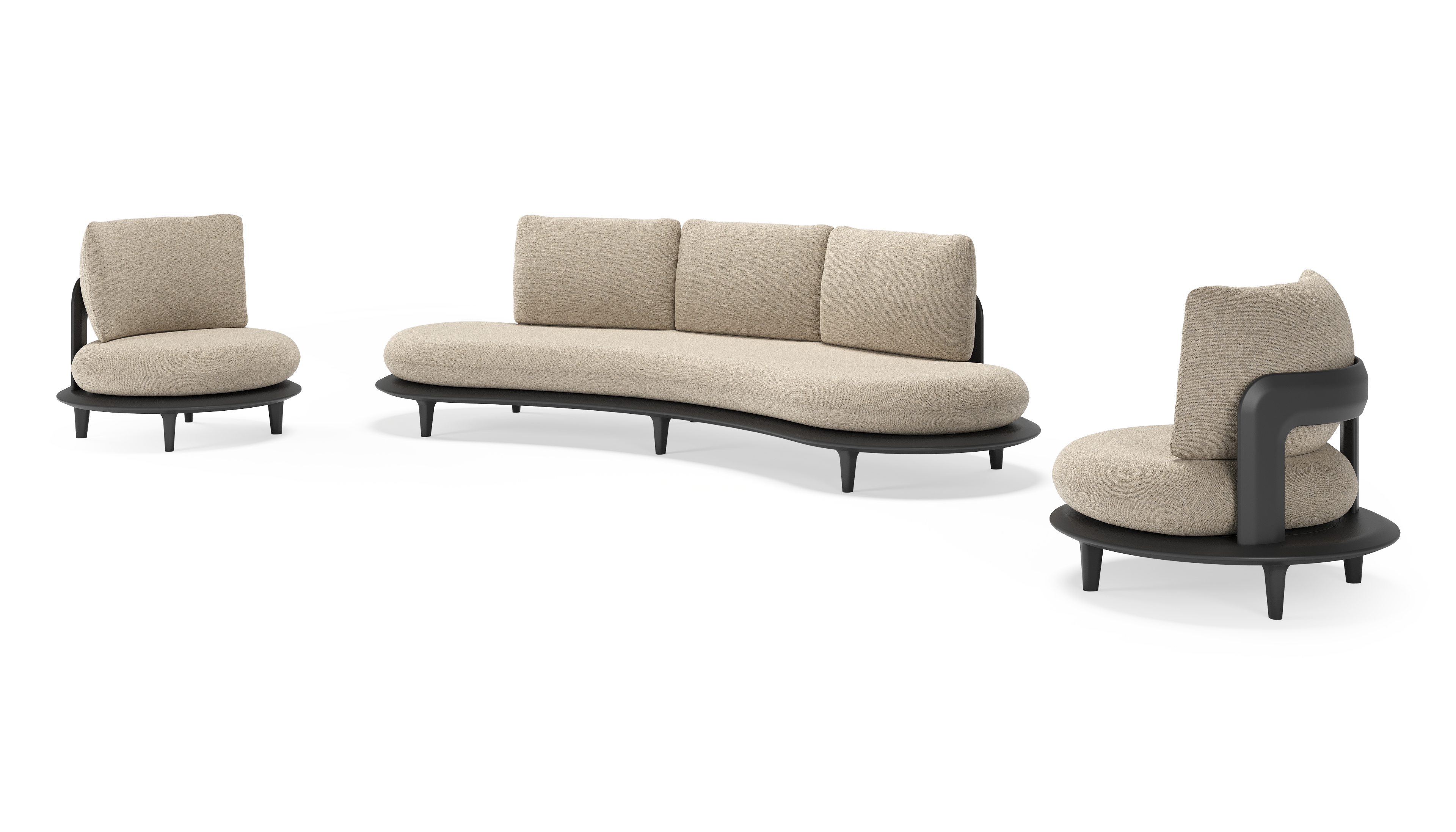 Bomero loungeset in zwart aluminium met marbella beige all weather cosytica kussen | Exterioo tuinmeubelen
