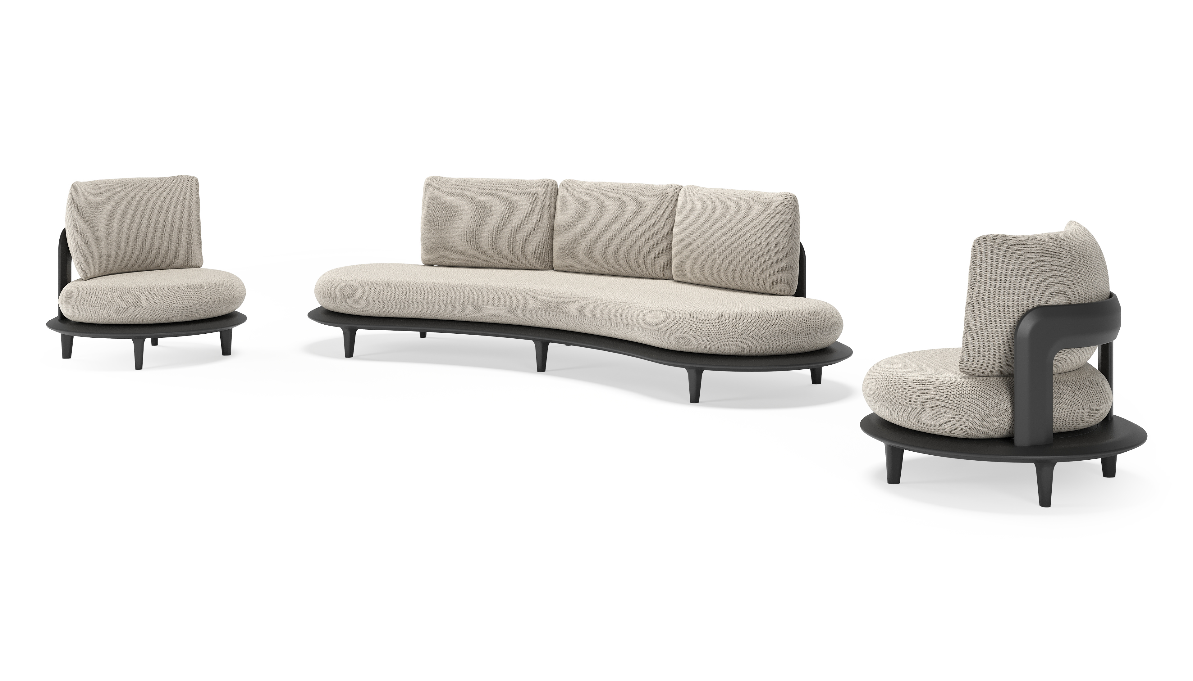 Bomero loungeset in zwart aluminium met firenze sand all weather solica kussen | Exterioo tuinmeubelen