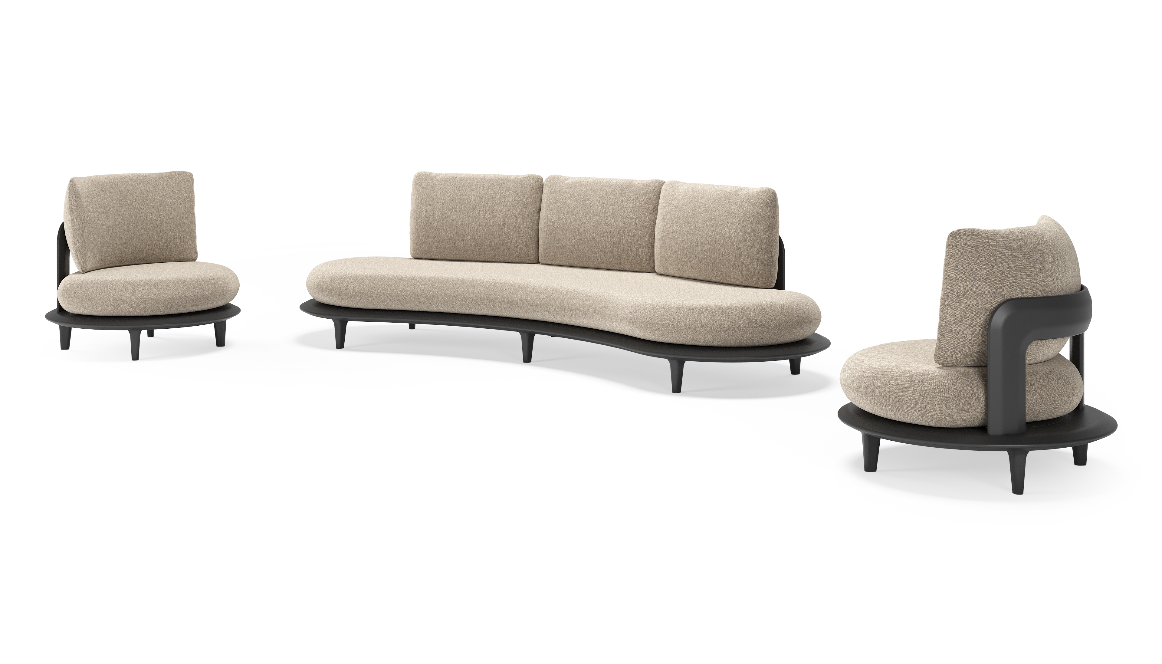 Bomero loungeset in zwart aluminium met chartres pewter all weather sunbrella® luxe kussen | Exterioo tuinmeubelen