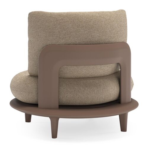 Bomero loungestoel in taupe aluminium met madagascar oak all weather cosytica kussen | Exterioo