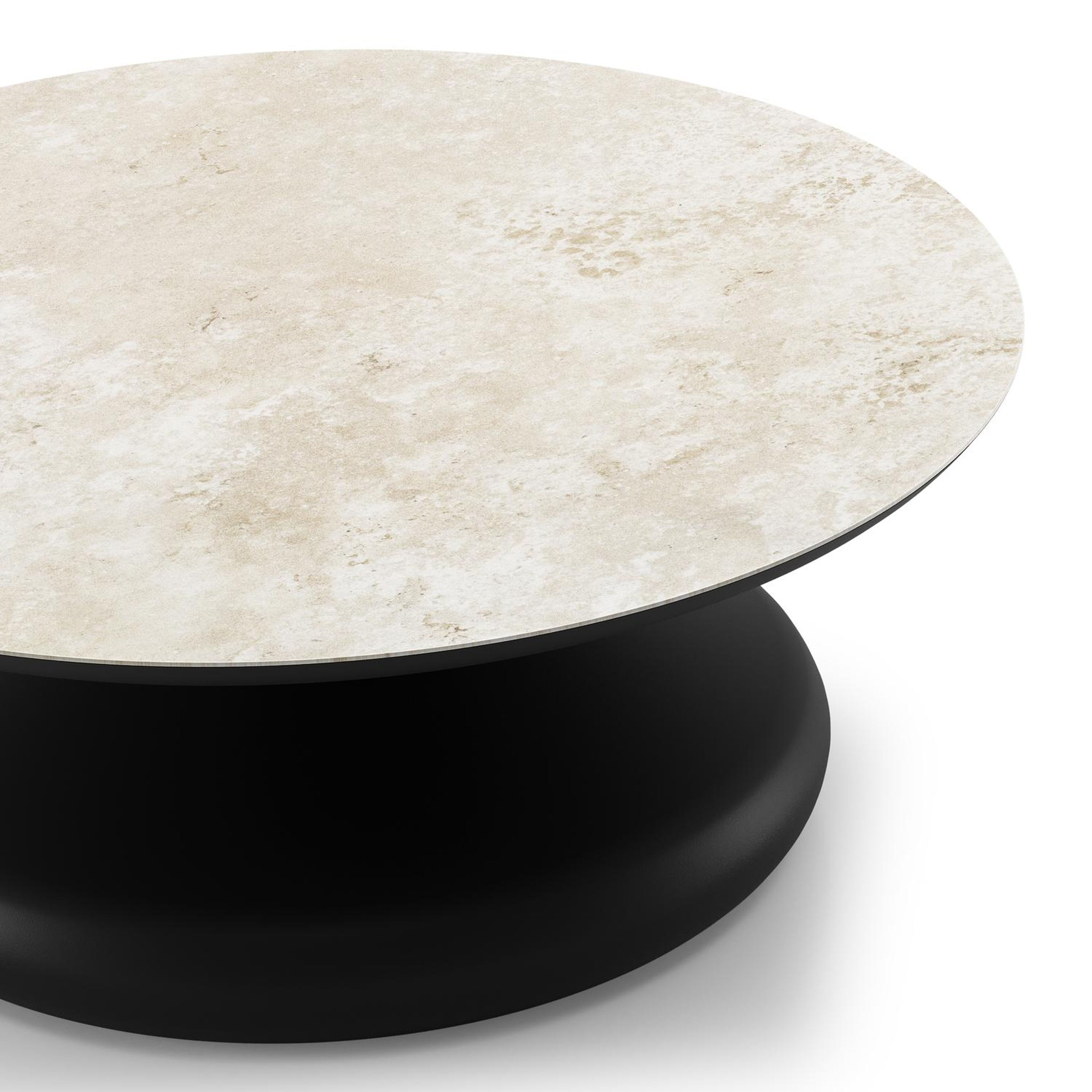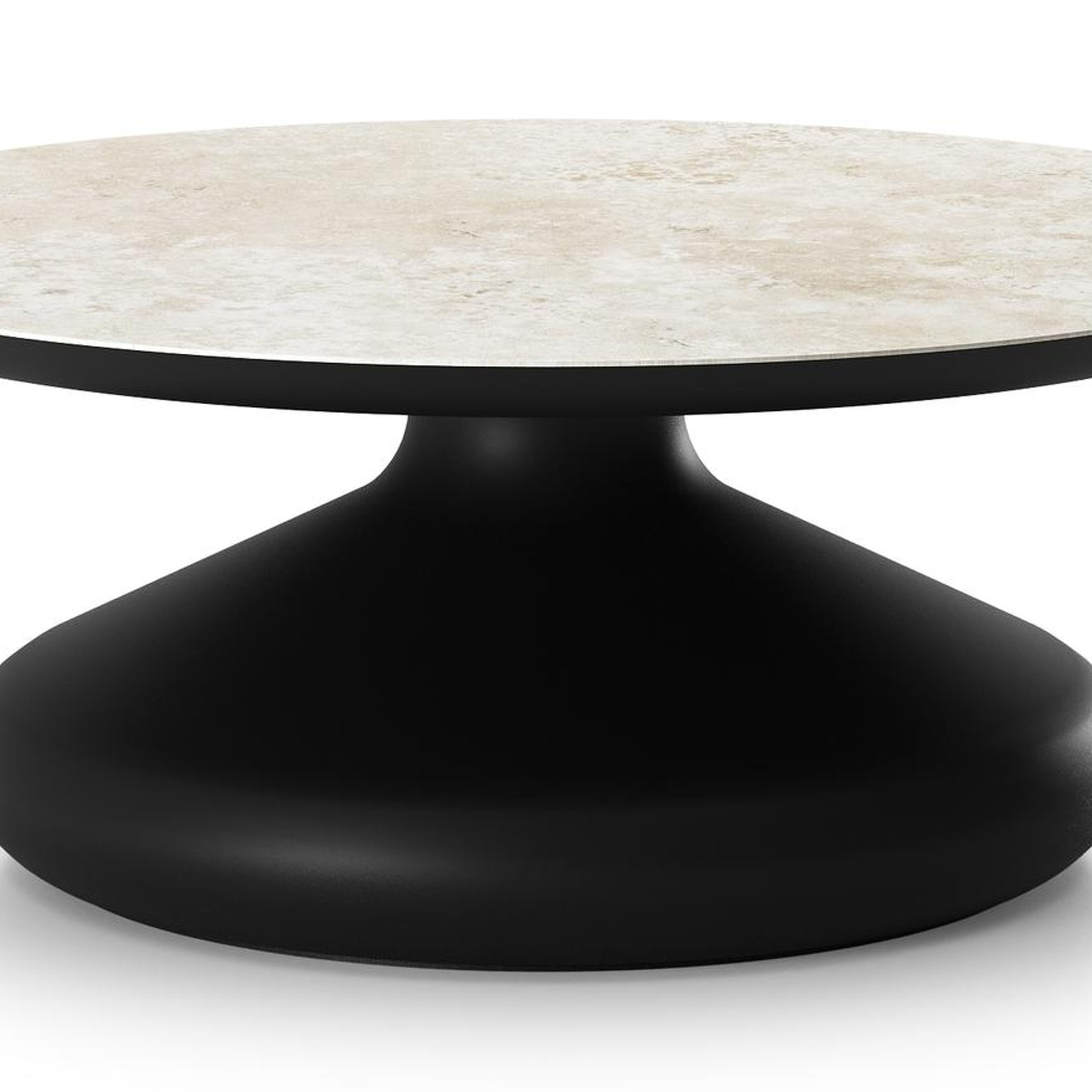 Bomero loungetafel rond in zwart aluminium en volkeramiek Rapolano - Dia. 84 x H 32.2 cm | Exterioo tuinmeubelen