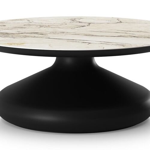 Bomero loungetafel rond in zwart aluminium en volkeramiek Colorado Dunes - Dia. 84 x H 32.2 cm | Exterioo